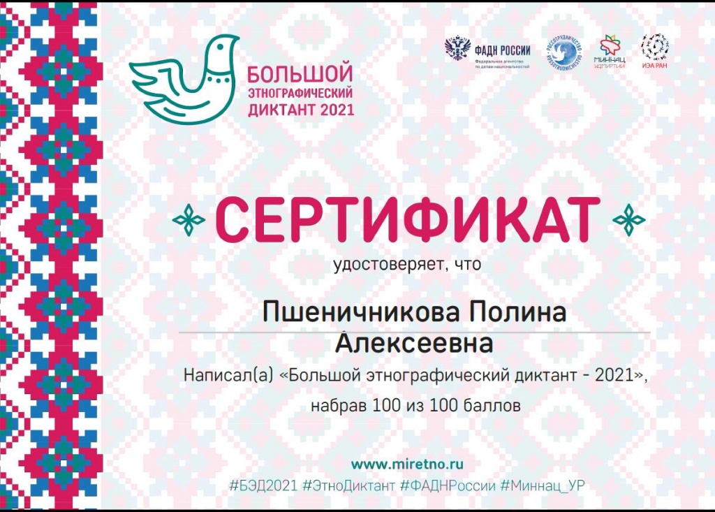 Максимальная сумма баллов за выполнение всех заданий – 100. Для наших студентов это возможность проверить свои знания об истории и культуре народов нашей страны и малой Родине – Урале.