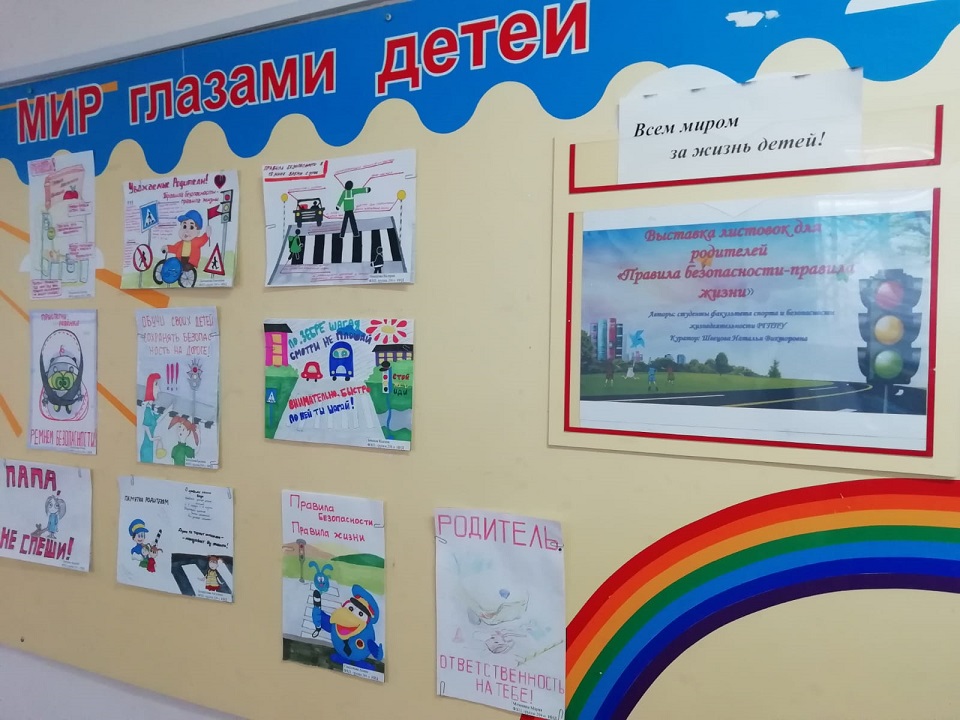 Для родителей учащихся Детско-юношеского центра «Мир» нашими студентами была оформлена выставка листовок «Внимание, родители! На дороге – дети!», которая напоминает о соблюдении правил безопасного поведения всеми участниками дорожного движения.