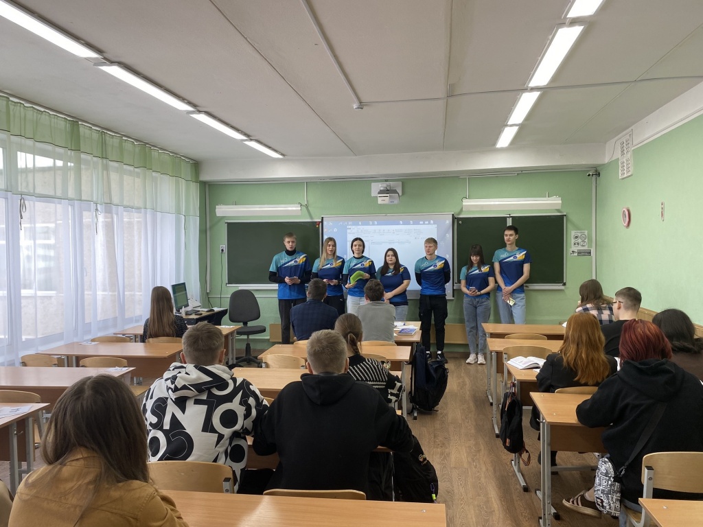 В День российского студенчества студенты 2–4 курсов факультета спорта и безопасности жизнедеятельности посетили МАОУ СОШ № 40 и провели интерактивную программу «Мы – студенты! И мы гордимся этим!» для учащихся 8–10 классов. Ребята выступали перед школьниками, рассказывали о мире профессий и важности их выбора, об особенностях студенческой жизни, а также разработали и провели веб-квест «Грамматика профессий», онлайн-экскурсию по нашему институту, презентовали факультеты и профили обучения, а школьники получили полиграфическую продукцию о приемной кампании – 2024.