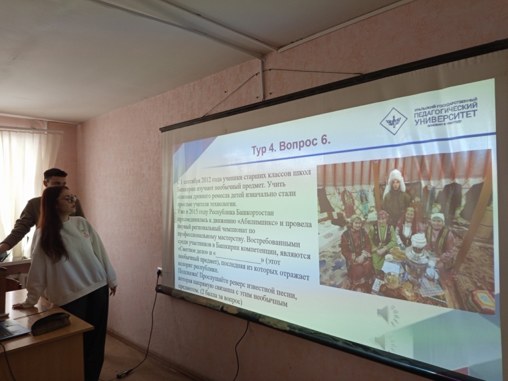 В рамках дисциплины «Система управления охраной труда» студенты 3 курса профиля «География и экономика» под руководством старшего преподавателя кафедры БЖФК Алены Сергеевны Федюниной разработали и провели квиз-игру для студентов 1–3 курсов СПО. Интересно, что вопросы квиза были составлены с использованием искусственного интеллекта.