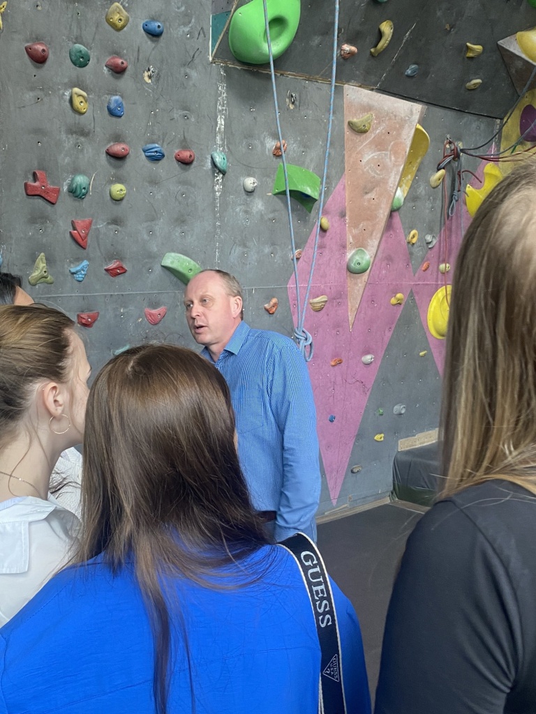 Во время знакомства со станцией Николай Антонович Кравец, педагог-камнерез стации, провел экскурсию в музей минералогии и рассказал, как на его занятиях ребята учатся изготавливать каменные сувениры. Студенты посетили музей природы, кабинеты краеведения и туризма, а также гордость станции – искусственный скалодром. Михаил Сергеевич отметил, что на станции сохраняется преемственность поколений: большая часть педагогов –выпускники ГорСюТур, подчеркнув важность и нужность выпускников нашего факультета для развития спорта, краеведения и туризма для будущего города.