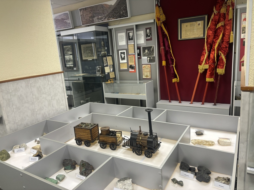 Далее экскурсию продолжили в Доме техники, где заведующая музеем Оксана Владимировна Бутрина рассказала о Высокогорском горно-обогатительном комбинате, старейшем предприятии России. Первая руда пошла в здесь 1721 году. Таким образом, этому предприятию почти три века. Руда добывается открытым и закрытым способами. В музее представлены экспонаты, рассказывающие о вкладе ВГОКа в дело Победы в Великой Отечественной войне, развитие города, о трудовых династиях комбината и орудиях труда за 300 лет.