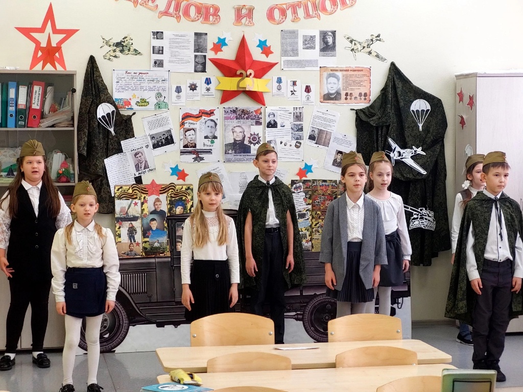 В преддверии Дня Защитника Отечества студенты факультета спорта и безопасности жизнедеятельности спорта приняли участие в работе жюри мероприятий фестиваля военно-патриотического воспитания школьников «Отвага, мужество и честь», проводимых в МАОУ СОШ № 100. Студены 3 курса Фирсов Иван и Виниченко Дмитрий приняли участие в составе жюри конкурса «Уголок боевой славы». Данное мероприятие проходило среди учащихся 3-х классов, таким образом наши студенты оценили 11 творческих работ. Задачей школьников было оформить уголок и представить его конкурсной комиссии. Критериями оценивания были: соответствие теме, полнота содержания, оригинальность, качество, эстетика, творческий подход. Тематики уголков были самые различные, например: танковое производство Нижнего Тагила, оружие войны, ордена и медали военных лет, «Дорогами дедов и отцов», города-герои, женщина войны и другие. При оформлении были использованы: плакаты со справочной информацией, рисунки, фотографии военных лет, георгиевские ленты, различная одежда, как современная, так и военных лет, полноразмерные макеты оружия, уменьшенные макеты танков, небольшие диорамы, различный инвентарь, маскировка, книги, флаги Российской Федерации и СССР. Каждый класс представил свой уголок особенно интересно- массово или небольшой группой, читая стихи, исполняя песни, демонстрируя сценические номера. Некоторые классы проявили творчество и оригинальность, комбинируя все виды творческой деятельности. У наших студентов такая форма работы оставила положительные впечатления. Они отметили то, что очень приятно, что в МАОУ СОШ № 100 уделяется большое внимание патриотическому воспитанию и дети принимают активное участие в таких мероприятиях. Конечно, в конкурсе не могут все победить, необходимо было выбрать лучших, что оказалось довольно не просто. Самыми зрелищными стали выступления, покорившие студентов массовостью и креативными находками. Кто-то решил сделать ставку на объём информации, а кто-то на эмоции. Студенты 2 курса Сулимов Денис, Клюкичев Даниил и Прокопенко Станислав приняли участие в работе жюри конкурса строя и песни. В этом конкурс приняли участие школьники первых и седьмых классов.