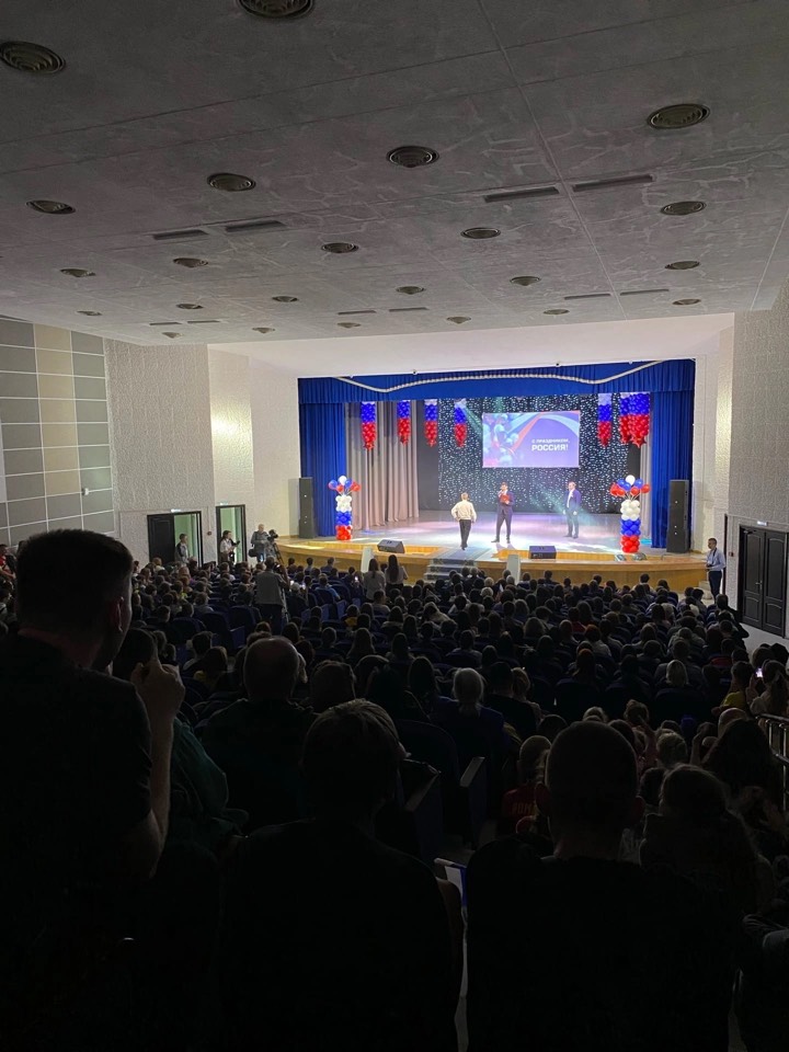 Праздничный концерт собрал полный зал: школьники, студенты, курсанты ВПК, отряды мэра, представители ветеранских организаций города.