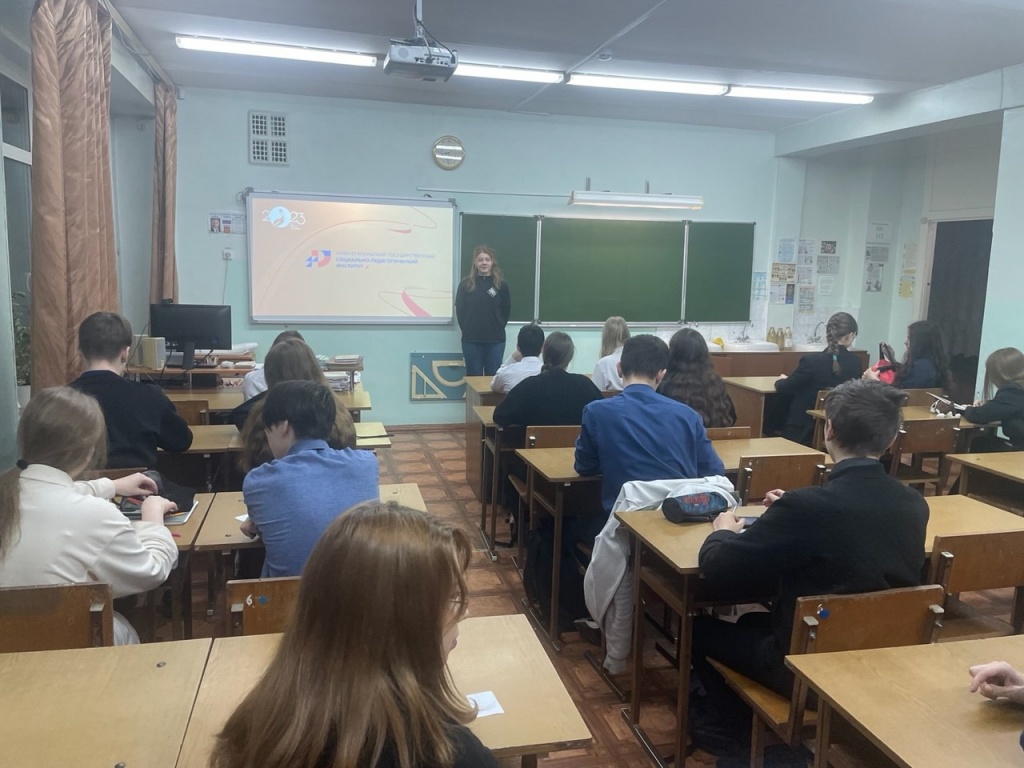 Студенты 3 курса факультета спорта и безопасности жизнедеятельности во время прохождения стажерской педагогической практики под руководством и при поддержке преподавателей кафедры БЖФК Т. Н. Дейковой, Е. Г. Мишиной и А. С. Федюниной провели цикл профориентационных иероприятий для учащихся ОУ города Нижнего Тагила. Для учащихся МАОУ СОШ №№ 40, 69, 95, 100, Гимназия № 18, Гимназия № 86 был проведен веб-квест «Путешествие на Остров профессиональных интересов». Студенты рассказывали о мире профессий и важности их выбора. Кроме того, была представлена онлайн-экскурсия по нашему институту. Презентуя его профили, студенты рассказывали о значимости педагогической профессии в обществе. В завершение мероприятия ученики получили печатную продукцию и памятки об условиях приема в вуз в 2025 году. Студенты пригласили учащихся на Дни открытых дверей.