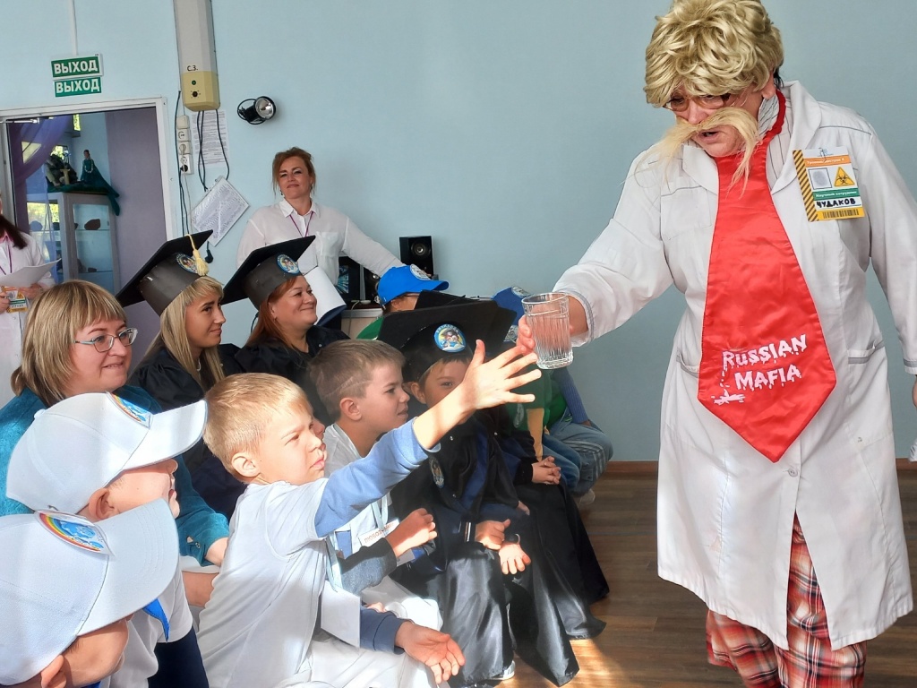 Юные ученые из разных детских садов искали фрагменты кодового замка в мини-лабораториях. Собрав все элементы, команды смогли освободить попавшего в беду профессора. За это он раскрыл секретные формулы экспериментов.