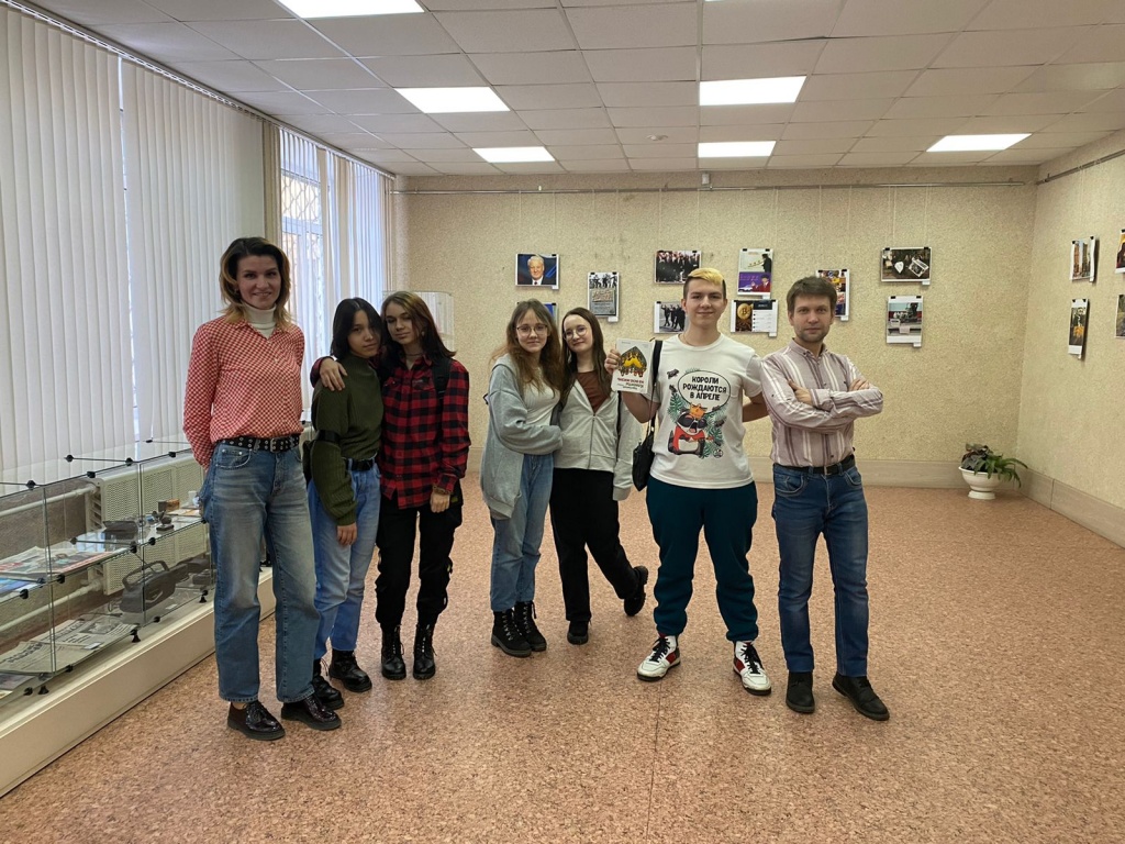 8 декабря выставку «Трансформирующаяся реальность» посетили гости из НТГПК им. Н. А Демидова. Студенты профиля подготовки «Туризм» вместе с преподавателем литературы Максимом Александровичем Жидковым с интересом осмотрели выставочный зал музея НТГСПИ, где располагается выставка. Зав. музеем Е. А. Казакова провела для ребят экскурсию, рассказав о произошедших изменениях в новейшей истории России. Слушая рассказ экскурсовода, студенты с интересом рассматривали фотозону выставки.