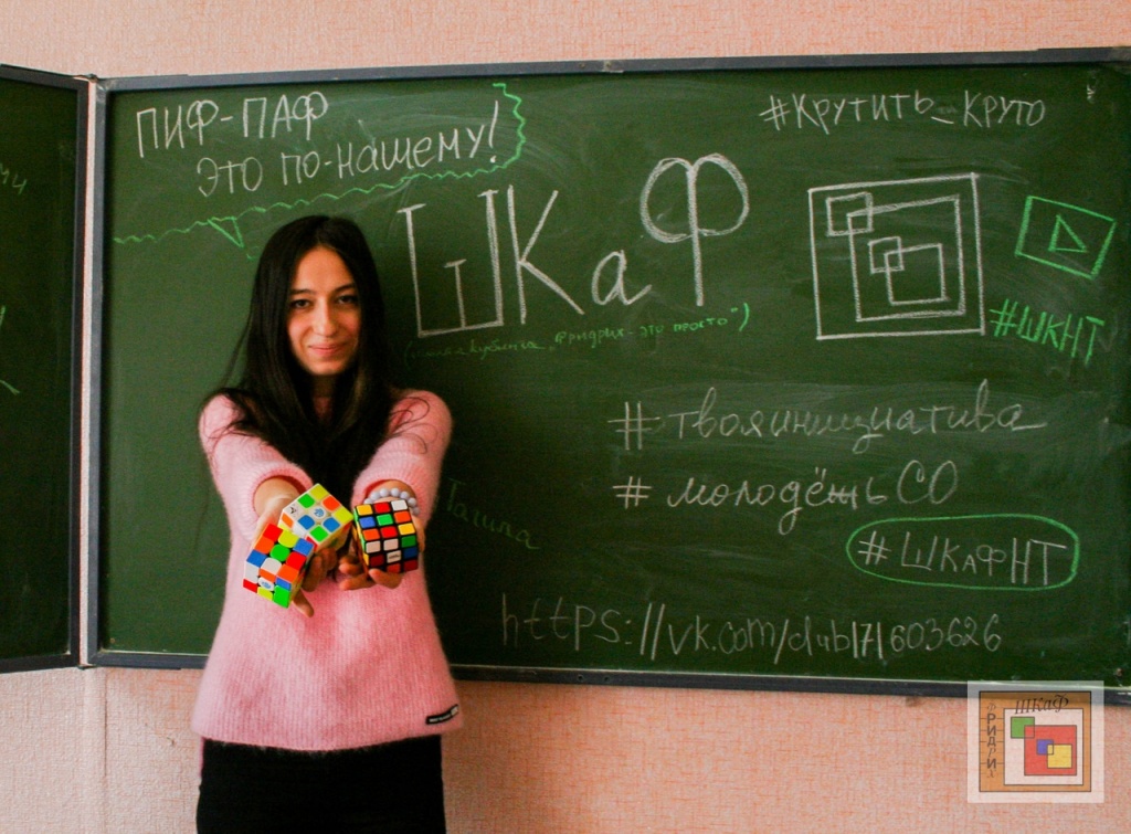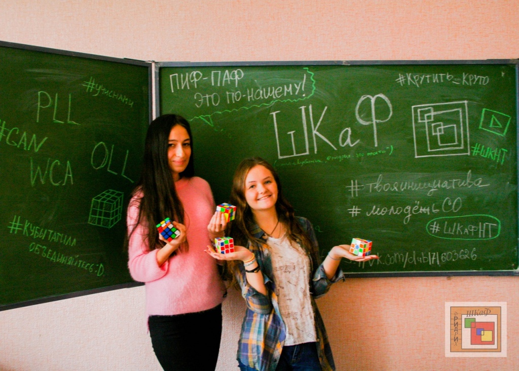 Ольга: Название «ШКаФ» для нашего проекта появилось сначала в его полном варианте: Школа кубинга «Фридрих ‒ это просто». Этим названием мы хотели, в первую очередь, показать нашим будущим ученикам, что даже сложнейший метод сборки кубика Рубика (метод Джессики Фридрих, состоящий из 120 различных алгоритмов и этапов сборки) станет простым и доступным всем ребятам. Но такое название слишком длинное и не запоминающееся. Так появилось короткое и звучное «ШКаФ».