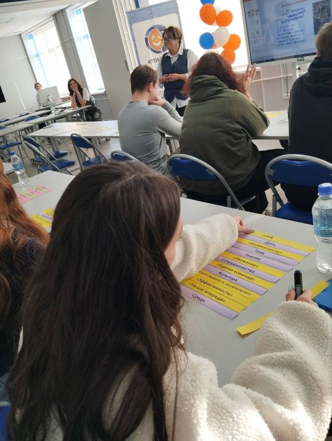 Настоящим «сердцем» дня стал ситуационно-интеллектуальный поединок, который провела молодой педагог, победитель конкурса «Школа Росатома» Виктория Харченко. Студенты разбирали жизненные кейсы, учились выходить за рамки шаблонов и, как говорят в Лесном, «распредмечиваться».