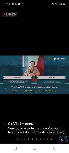 «Побывав на Форуме, могу сказать, что дипломатия – это не только налаживание отношений между государствами, но и между социальными группами государств, в данном случае – молодежью. Мне больше всего понравилось выступление Чень Айжу – старшего научного сотрудника Академии Марксизма Китайской академии общественных наук (Пекин). Она говорила о том, что наша жизнь не проста, в ней есть трудности и неприятные ситуации, и благодаря им мы становимся только сильнее, выносливее. Молодежь – это сильные, новые люди нашего времени. И только от нас зависит каким будет наше будущее».