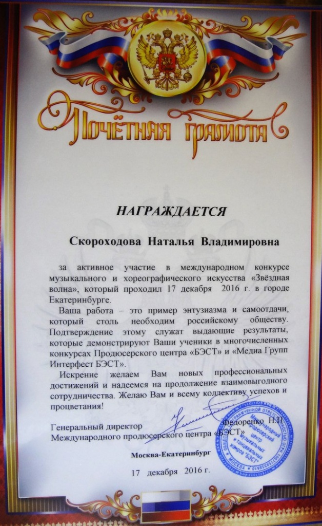 17 декабря 2016 года в Екатеринбурге состоялся Международный конкурс музыкального исполнительского творчества «Звездная волна».