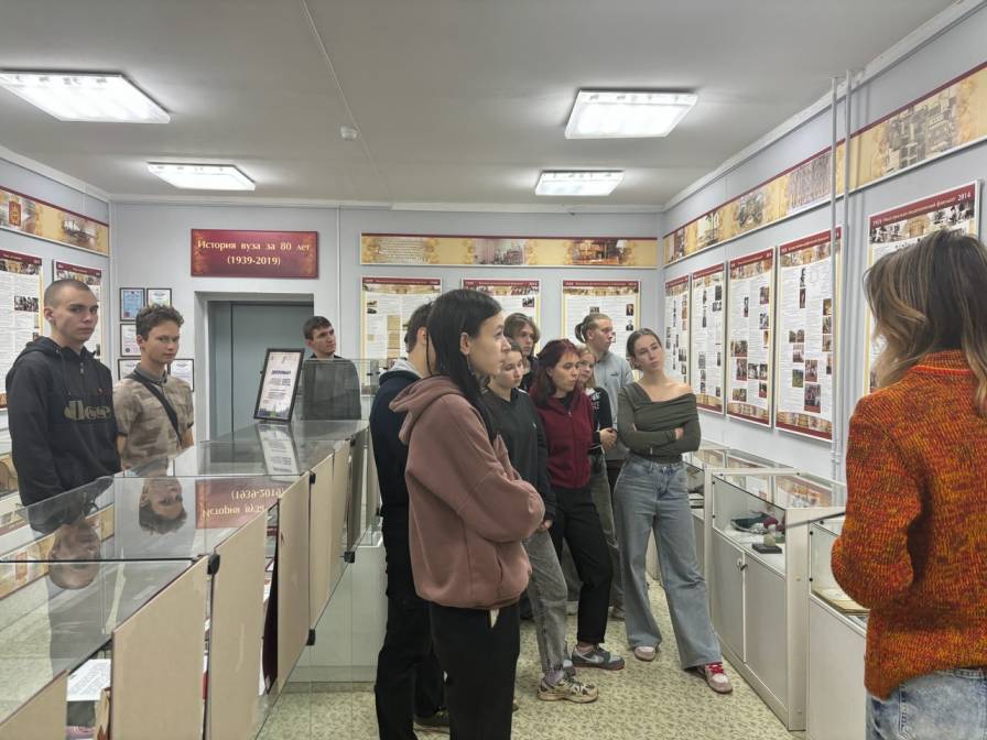 Студенты всех первых курсов активно посещают выставку и обзорную экскурсию в музей истории института. Экскурсию проводит профессионал своего дела, хранитель истории – Елена Александровка Казакова.