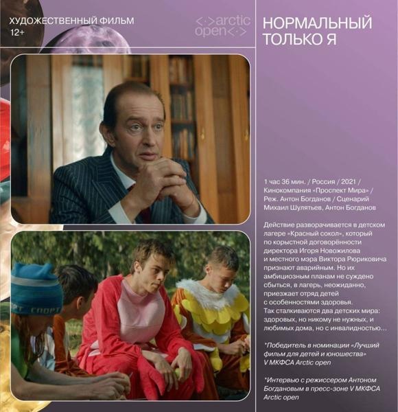Студенты имели возможность познакомиться и обсудить фильм, имеющий профессиональную направленность – «Нормальный только я», презентованный в рамках программы киномарафона «Arctic Open». Сюжет картины повествует о летнем лагере, который становится местом столкновения подростков девиантной направленности и детей с ограниченными особенностями здоровья. После просмотра состоялось обсуждение киноработы и острых социальных проблем, которые в ней затронуты.