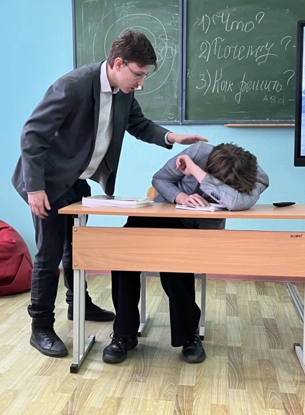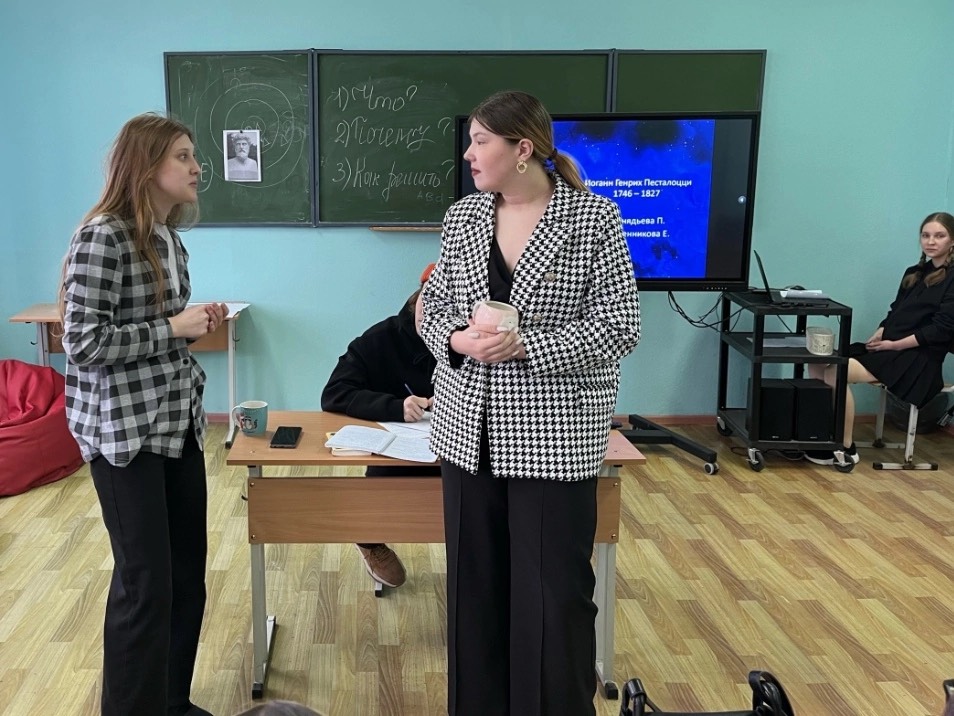 11 декабря на социально-гуманитарном факультете у студентов 2 курса групп Нт-201о ИОПМ и Нт-202о ИОПМ состоялось итоговое занятие в рамках дисциплины «Педагогика», модуль «История педагогики и образования» (преподаватель – М. В. Манакова). В целях закрепления материала, полученного в рамках дисциплины, студентами была реализована идея организовать театральную мастерскую, связанную с изучаемым ими предметом. Студенты предстали в ролях различных педагогов из прошлого, таких, как Ян Амос Коменский, Джон Локк, Жан-Жак Руссо, А. С. Макаренко и др.