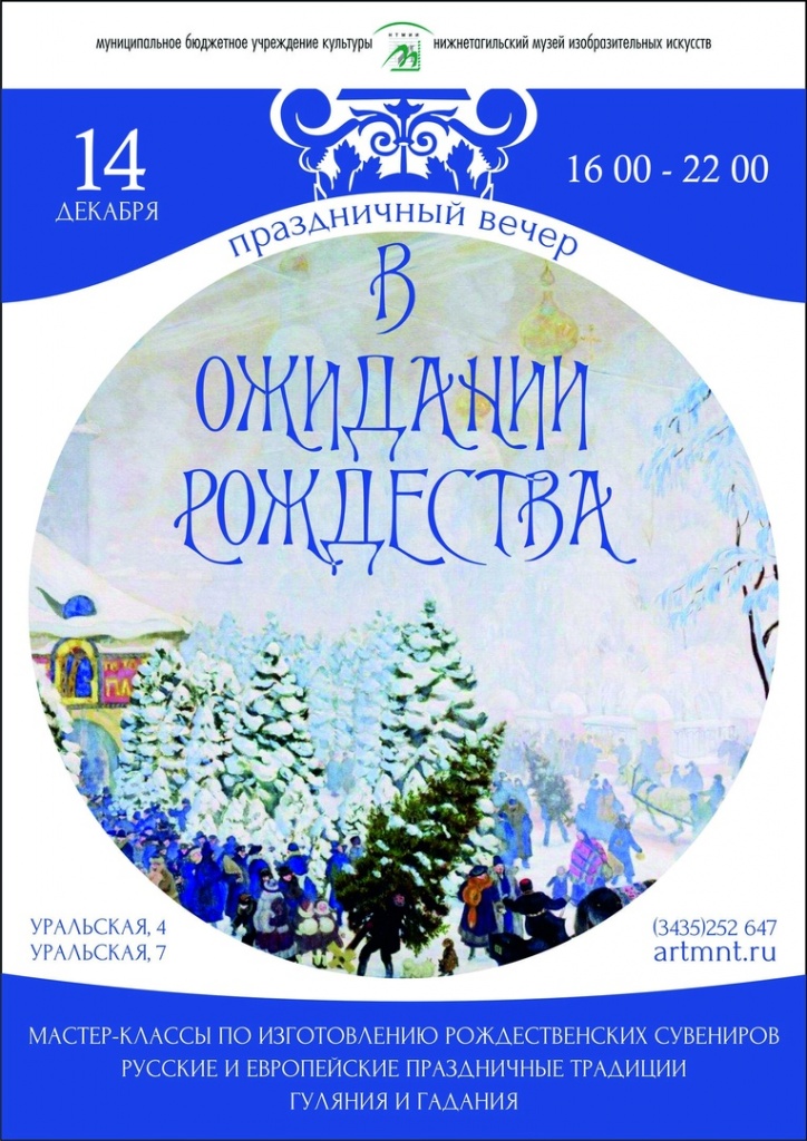 14 декабря 2018 года приглашаем посетить праздничный святочный вечер «В ожидании Рождества» в Нижнетагильском музее изобразительных искусств