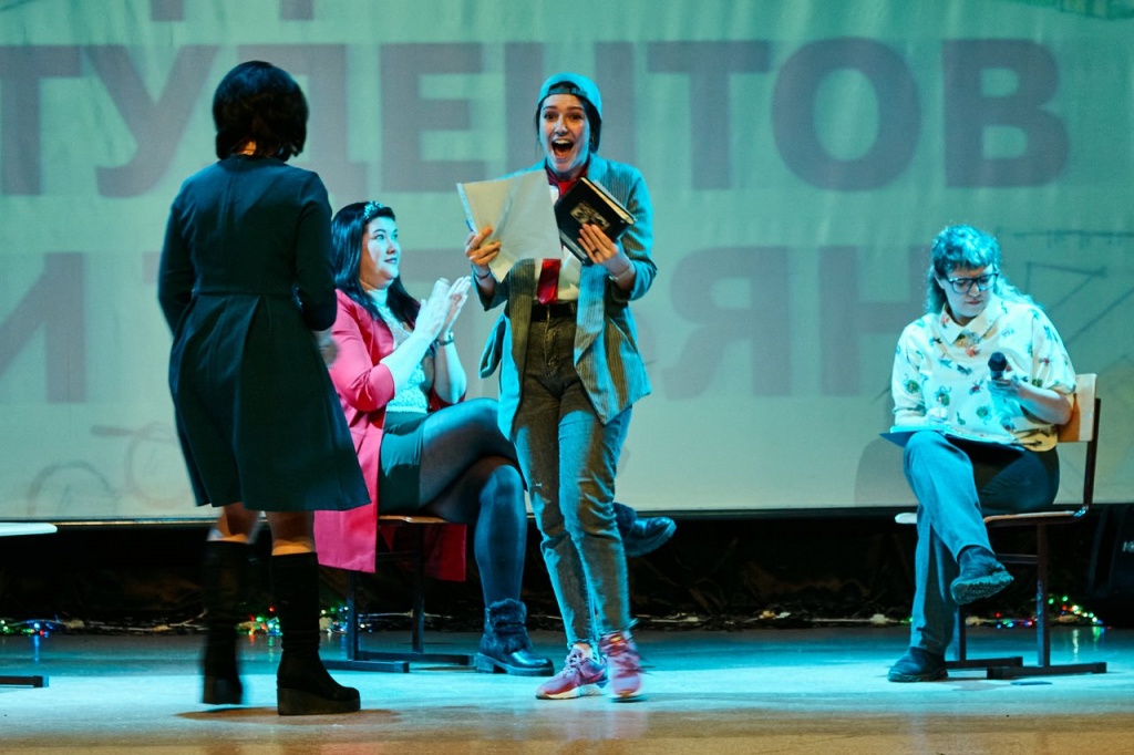23 января 2020 г. в НТГСПИ прошел творческий конкурс «Свобода творчеству!», посвященный Татьяниному дню, Дню российского студенчества. В концерте приняли участие студенты заочной формы обучения всех факультетов. Для организатора конкурса, Управления воспитательной работы, стало приятной неожиданностью видеть, с каким интересом и азартом студенты отнеслись к данному мероприятию. Зрительный зал был полон, а на сцене были исполнены самые разнообразные и фееричные номера – сказка «Репка» на новый лад, веселая сценка «Студенческая жизнь», видеоролик «Жизнь замечательных людей», фортепианное исполнение и конечно же, песни и танцы разных стилей. Зрители и жюри получили истинное удовольствие от происходящего. Директор НТГСПИ (ф) РГППУ Лилия Евгеньевна Егорова от души поздравила всех студентов и Татьян с их праздником, а также вручила дипломы за участие и памятные подарки каждому участнику мероприятия.