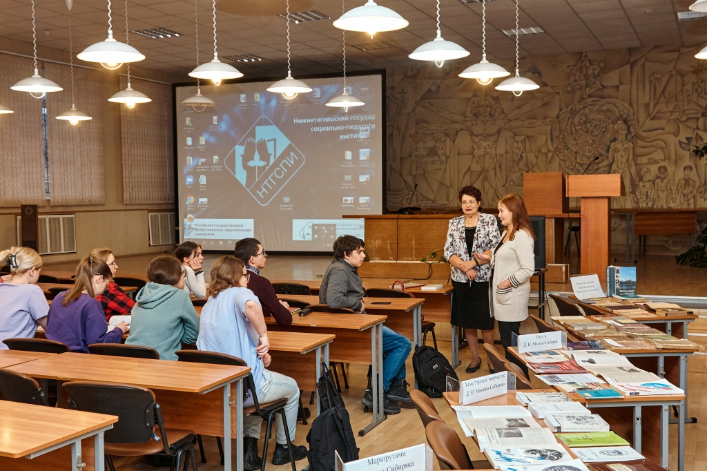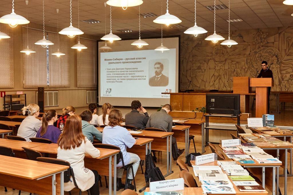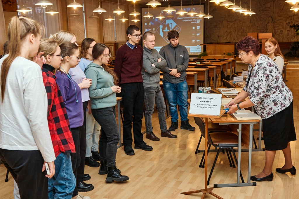 К 170-летию со дня рождения Д. Н. Мамина-Сибиряка в читальном зале вуза 10 ноября открылась выставка «Свое перо Уралу посвятил». На ней представлены книги из собрания библиотеки. Это различные издания произведений самого писателя и литературоведческие работы о его творчестве. Особый раздел выставки составляют книги из личных библиотек трех поколений Удинцевых, родственников Дмитрия Наркисовича, подаренные нашему институту через известного тагильского краеведа Ю. Д. Исупова. Куратором выставки является О.В. Левинских. А первую экскурсию для студентов 2 курса СГФ провела В.И. Коновалова.
