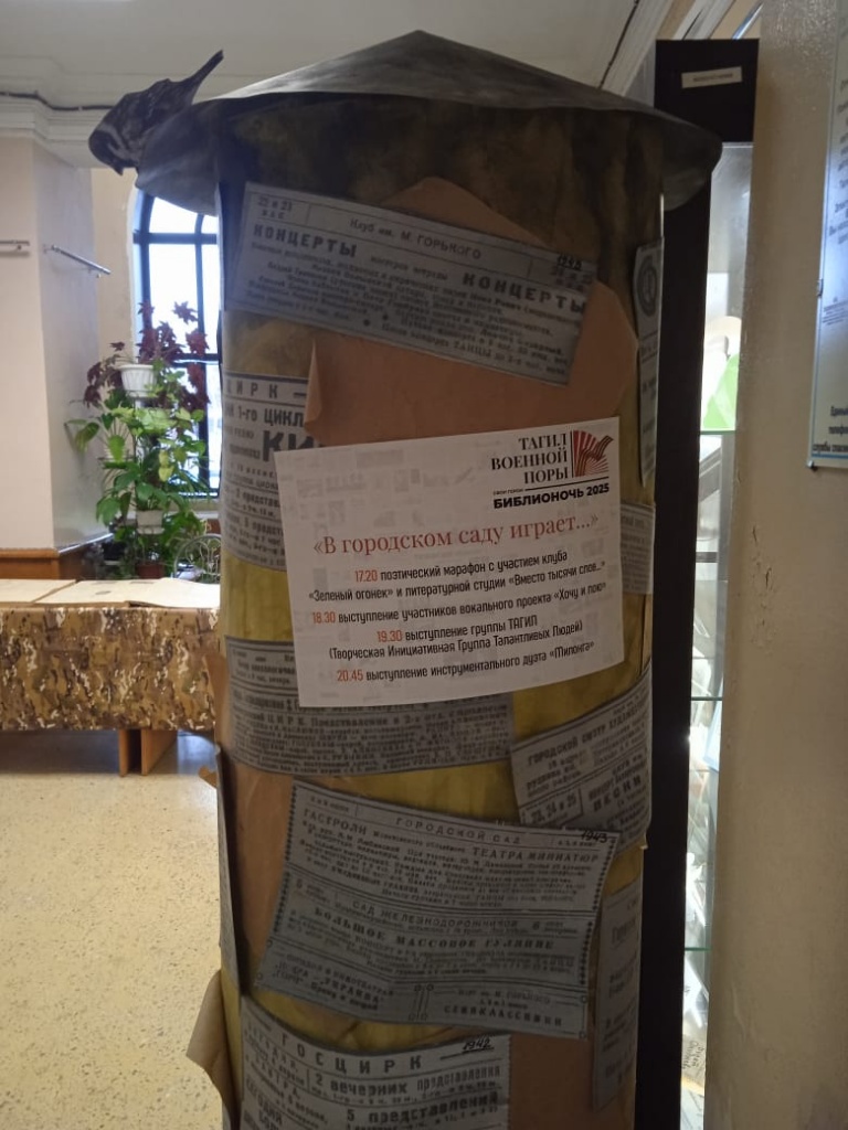 25 апреля в Центральной библиотеке города с 17:00 до 22:00 проходила «Библионочь» на тему «Тагил военной поры». В мероприятии приняли участие 700 горожан, которые посетили 30 площадок. На каждой из них была представлена уникальная программа, посвященная истории города в годы Великой Отечественной войны.