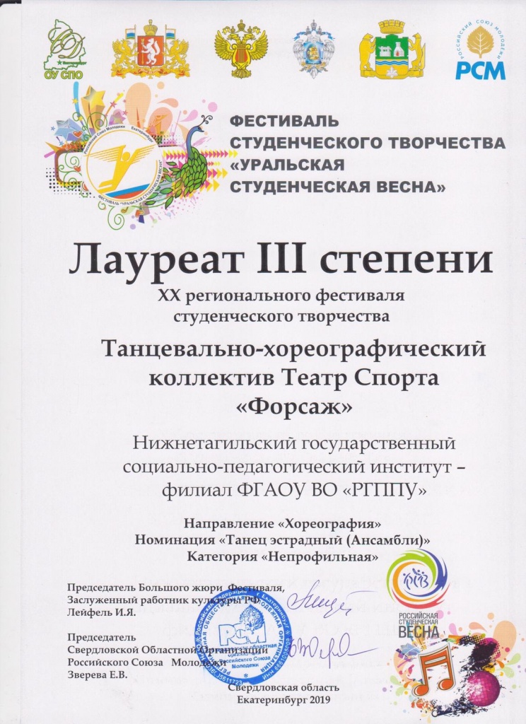 Студентам нашего института – участникам танцевально-хореографического коллектива Театр спорта «Форсаж» посчастливилось побывать на юбилейном ХХ конкурсе «Уральская Студенческая Весна»!