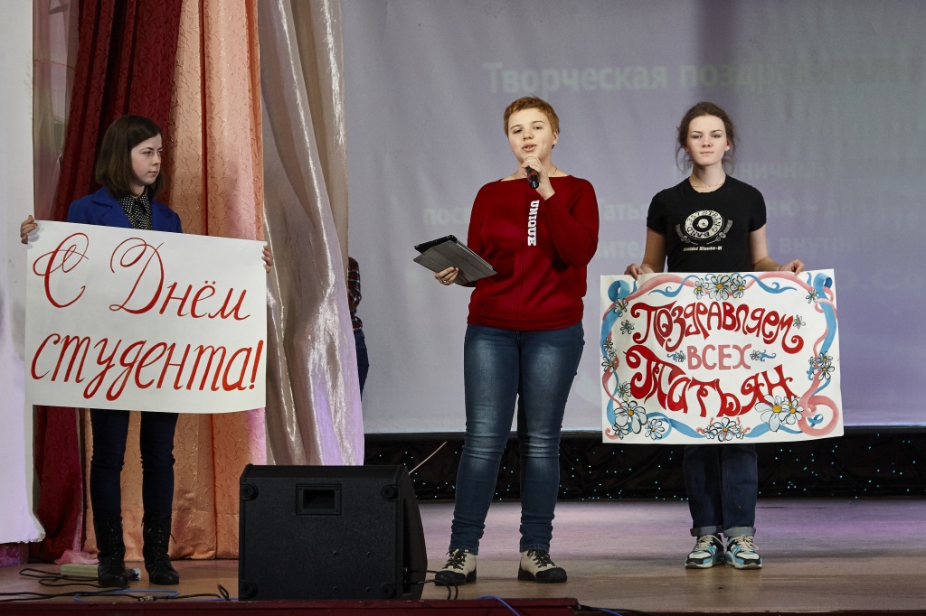 Близится к концу январь 2016 года. Казалось бы, все праздники позади, а в дальнейшем только учеба... Но 25 января – важный праздник для каждого студента, а также необычный день для всех Татьян – день Российского студенчества (Татьянин день). Звучит по-царски, и неспроста! Ведь сама Елизавета Петровна создала предпосылки для этого праздника, подписав указ об учреждении Московского университета. Этот же факт подчеркивала атмосфера, созданная в фойе главного корпуса НТГСПИ: трон, корона, царская пала, зачетная книжка – прямая взаимосвязь студенчества и царицы. В этом году уже 21 января начались мероприятия, посвященные Дню российского студенчества. В 12.30 стартовал внутривузовский конкурс «Квест СТУД.КОМ», участниками которого стали студенты – представители 6 факультетов. Первых шесть этапов конкурса проводились на территории главного корпуса. Ответственными за их проведение были студенческие деканы. Каждый студенческий декан встречал команды на своем этапе. Последний и завершающий 7 этап «Творческая поздравительная открытка» проходил на праздничном концерте в актовом зале. Все было необычно: сама императрица Елизавета Петровна, Иван Иванович Шувалов, Михаил Васильевич Ломоносов открывали торжественное мероприятие, в состав жюри входили не простые сотрудники, преподаватели и студенты, а прекрасные обладательницы имени Татьяна, все факультеты имели возможность поздравить всех студентов со сцены, использовали весь свой творческий потенциал. Итогом большого мероприятия стало награждение. Никто из участников не остался без внимания: