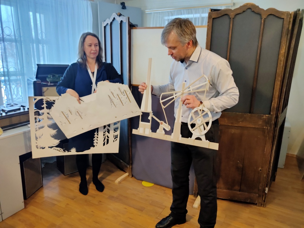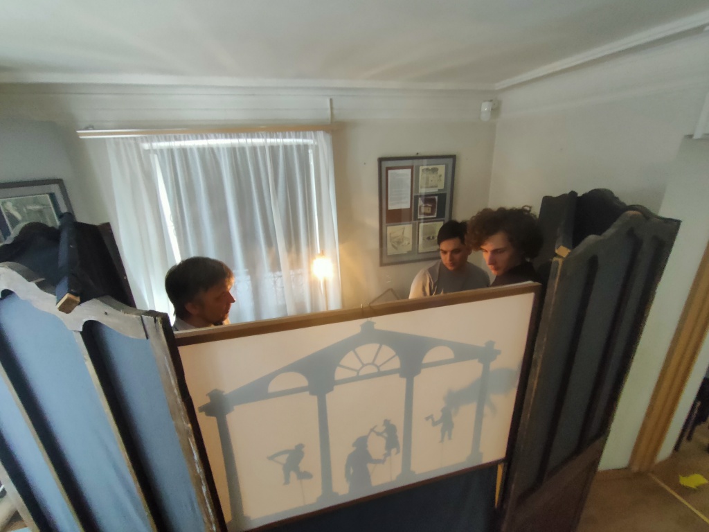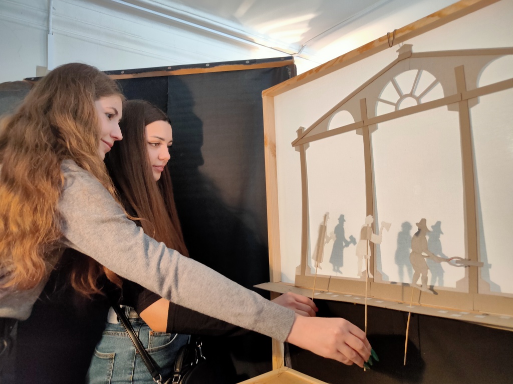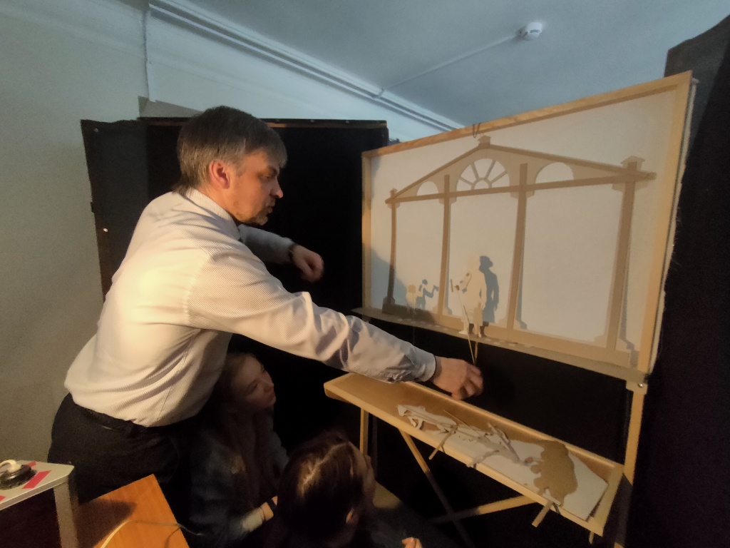 В живом диалоге с постановщиками и исполнителями были прояснены вопросы создания театральных конструкций, моменты свето-фоновой подачи. Речь шла и о создании сценария и образов не только к просмотренному спектаклю, но и к другим постановкам музейного театра. Студенты также имели возможность поработать с разноформатными элементами постановки, в том числе и за театральной ширмой. Ознакомление с технологиями работы театра теней проходило в рамках дисциплины «Практикум по организации любительского театра». Студентам удалось ознакомиться с работой театра теней как «снаружи», так и «изнутри» и убедиться, что создать свой небольшой театр теней не только возможно, но и интересно.