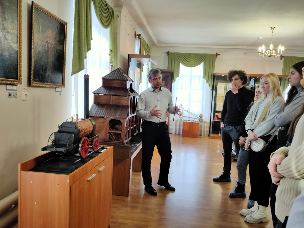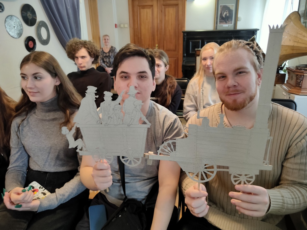 В начале марта студенты факультета художественного образования (профиль «Музыкальное искусство и театральное искусство») посетили историко-технический музей «Дом Черепановых». Основная цель визита – ознакомиться с работой музейного театра теней. Заведующий музеем Евгений Михайлович Ставцев перед просмотром спектакля «Пароходный дилижанец» провел небольшой, но содержательный исторический экскурс по музею, чтобы смысловые нюансы постановки, посвященной Черепановым, а также основанию Нижнетагильского рабочего поселка, были более ясны и понятны. Затем студенты посмотрели спектакль «Пароходный дилижанец», после которого речь зашла о технологиях работы театра теней.