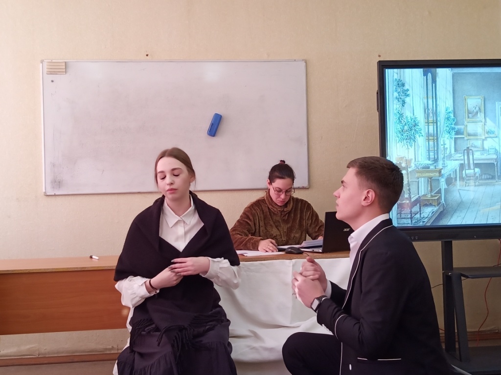 Необходимо отметить и сценаристов, режиссеров этого спектакля – Ксению Жвакину и Юлию Сазонову. Продумано было и оформление инсценировки, и костюмы, и музыкальное сопровождение. Все было гармонично. По существу студенты представили краткую версию произведения. Все основные мотивы, идеи пьесы были воплощены.