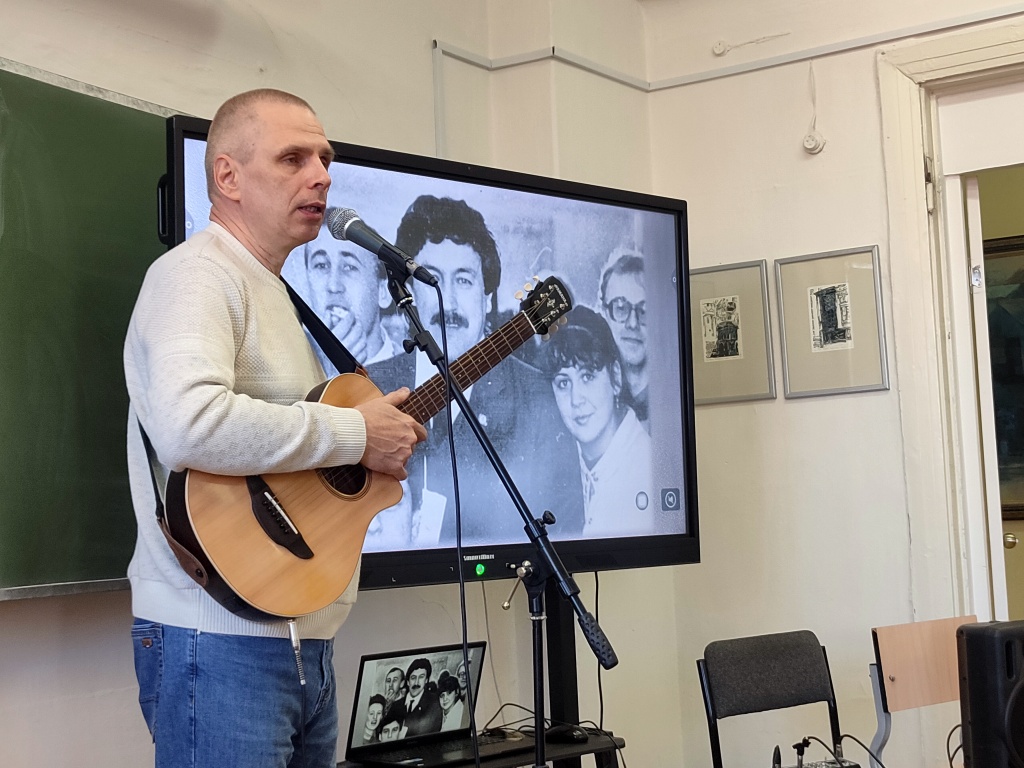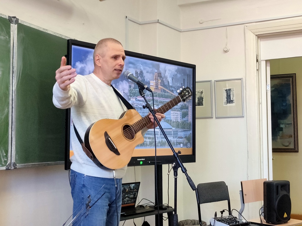 Обязательной частью беседы стало живое исполнение песен в исполнении гостя.