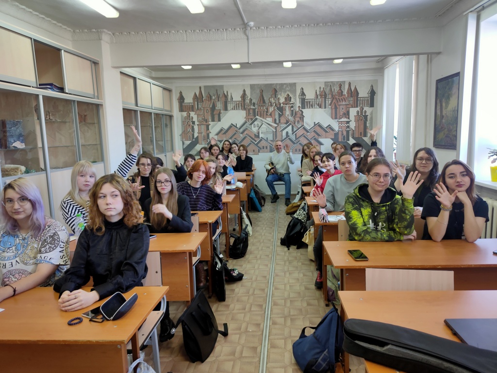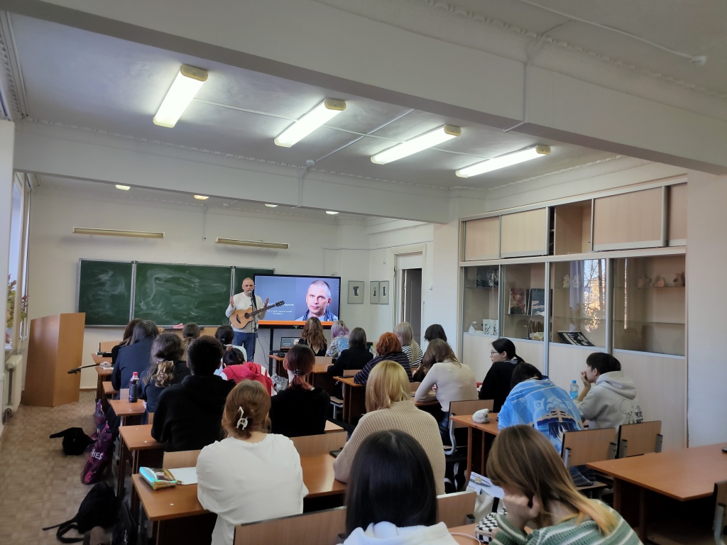 14 октября в формате кураторского часа «Разговоры о важном» на 1 курсе факультета художественного образования состоялась творческая встреча с художником, поэтом, музыкантом, выпускником факультета Ярославом Климановым (Екатеринбург).