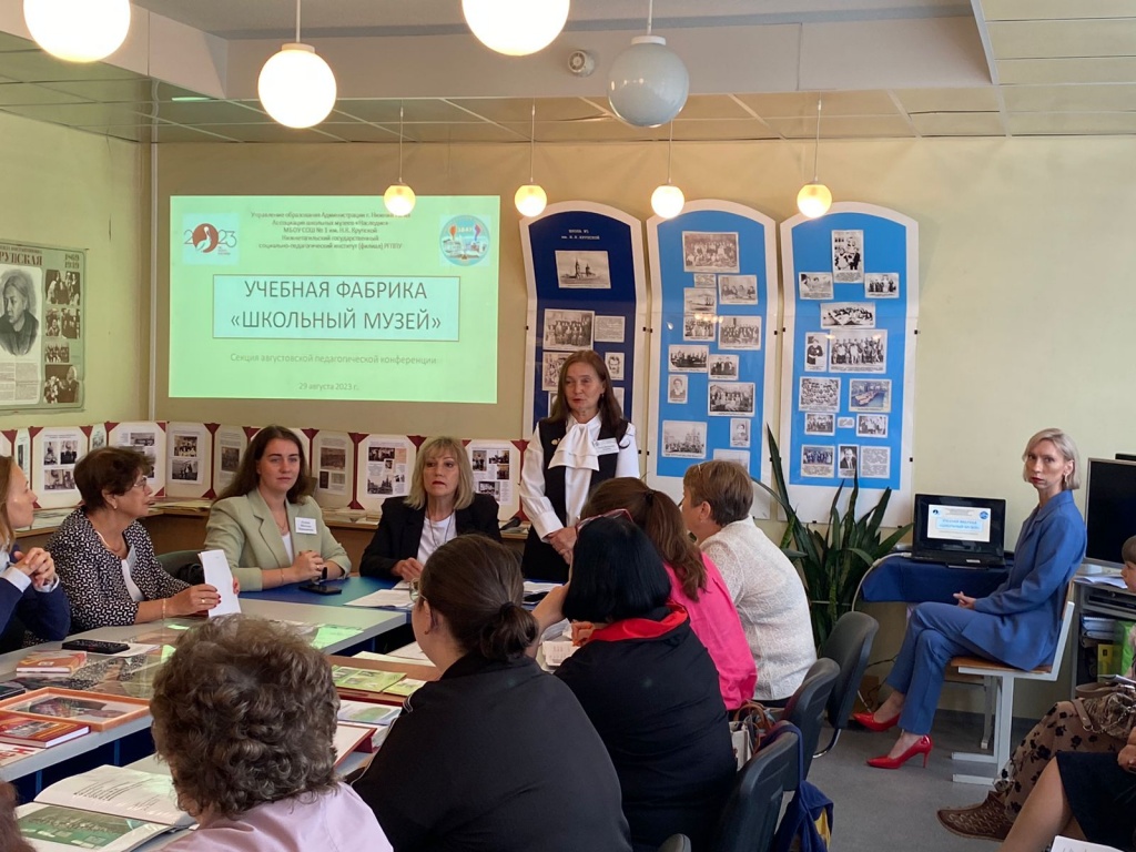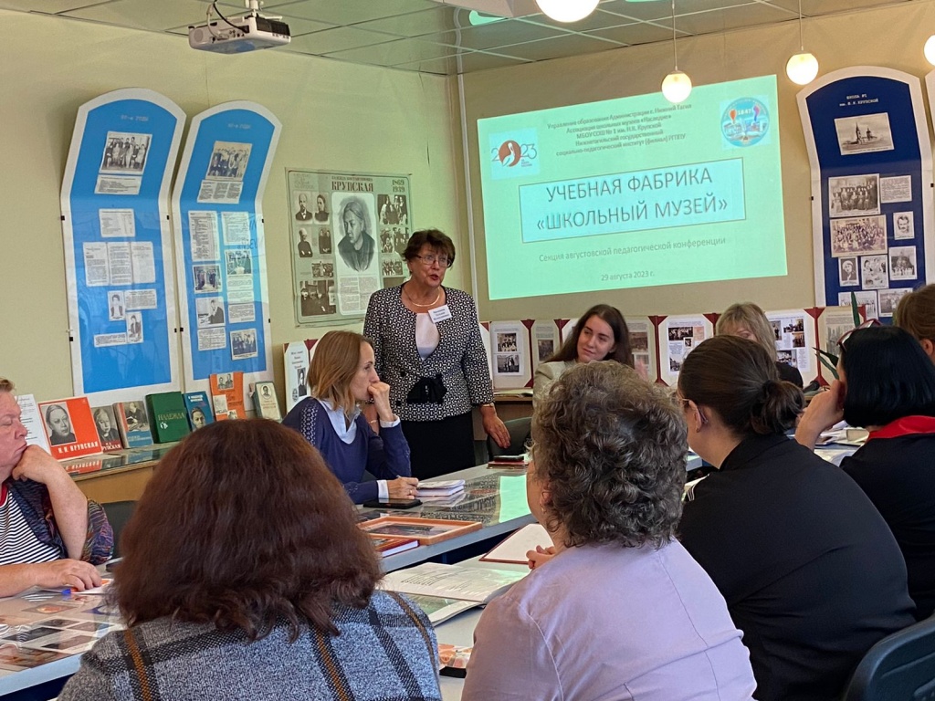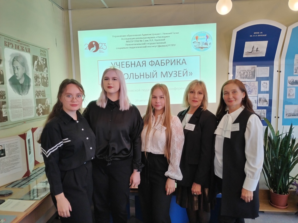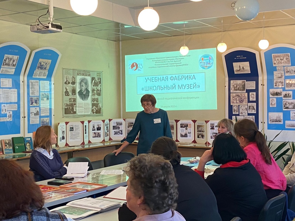 29 августа в рамках традиционной городской августовской педагогической конференции, организованной в формате учебной фабрики, впервые состоялась работа секции «Школьный музей» на базе МБОУ СОШ № 1 им. Н. К. Крупской. Место проведения было выбрано не случайно: в старейшей школе города находится «Музей истории образования г. Нижний Тагил». Участниками секции стали руководители школьных музеев, педагоги дополнительного образования, студенты социально-гуманитарного факультета филиала РГППУ (всего 42 чел.).