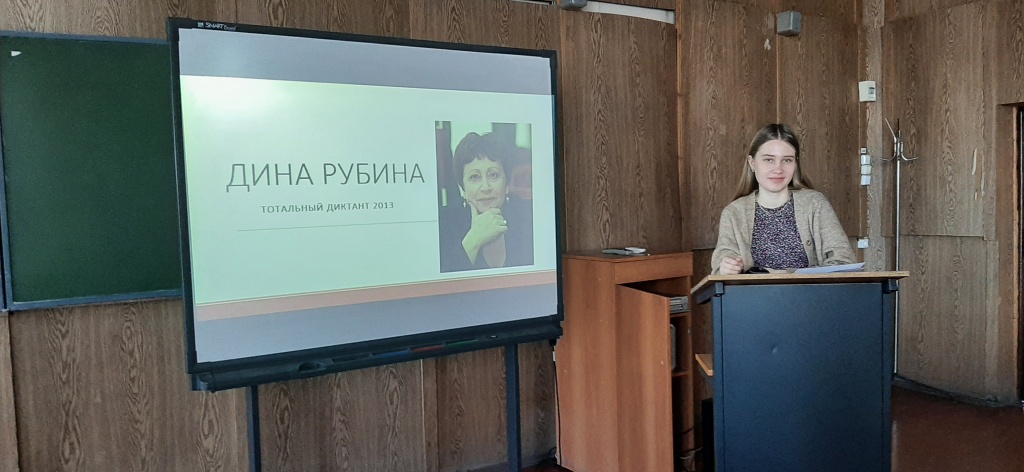 В связи с тем, что в этом году Нижний Тагил стал столицей «Тотального диктанта», для обсуждения были выбраны филологические исследования текстов авторов диктанта разных лет. Студенты рассказали о содержательных, языковых и стилистических особенностях произведений В. Авченко, Д. Глуховского, П. Басинского, Г. Яхиной, Е. Водолазкина, Д. Рубиной и др. Также участники мероприятия поделились личными впечатлениями о прочитанных книгах, придя к выводу о неоднозначности восприятия творчества этих писателей. Было отмечено, что произведения современных авторов часто не воспринимаются серьезно, но некоторые филологические исследования помогают раскрыть их скрытую на первый взгляд глубину.