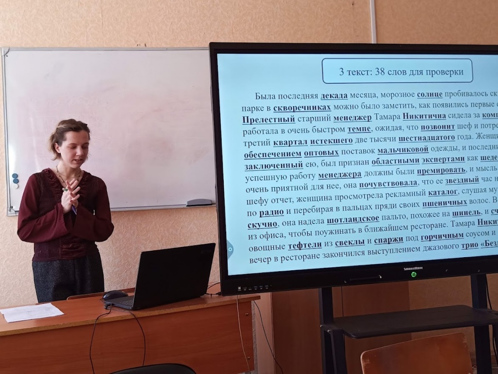 Яна Шиндяпина рассказала о результатах орфоэпического эксперимента, который она проводила совместно с Виолеттой Ивановой. Реципиентами являлись педагоги дошкольных и школьных учреждений. Эксперимент показал, что в целом обе группы обладают достаточно высоким уровнем владения орфоэпическими нормами.