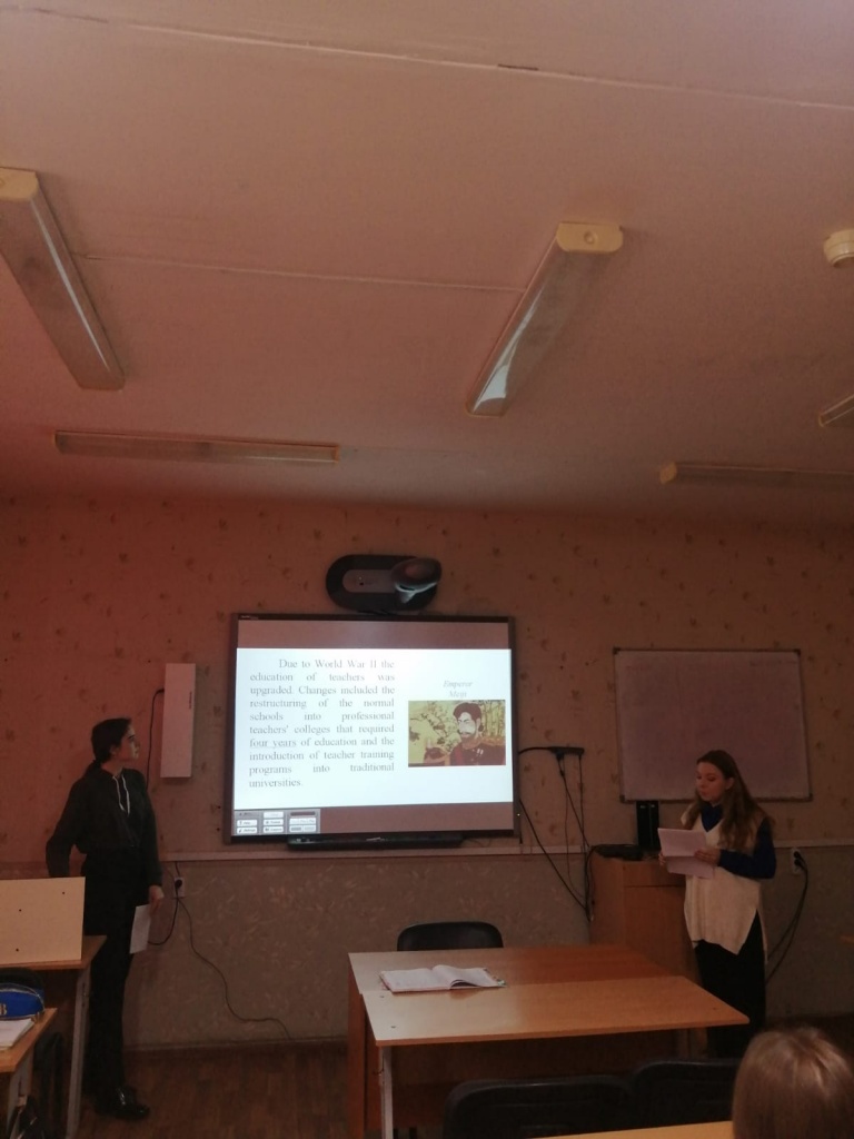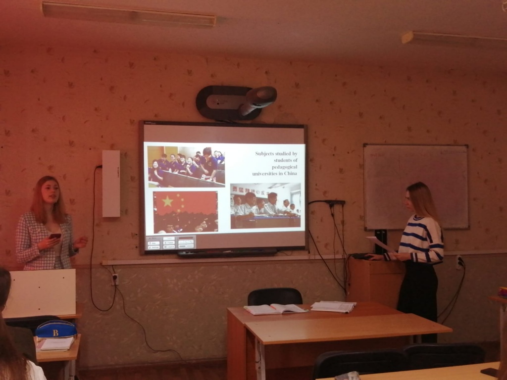 7 октября 2022 года на факультете филологии и массовых коммуникаций состоялся учебный семинар на английском языке на тему «Teacher Training across Cultures». Мероприятие было посвящено актуальным вопросам подготовки педагогических кадров в условиях интернационализации высшего образования. Студенты 2 курса профиля «Английский язык и немецкий язык» под руководством доцентов кафедры иностранных языков и русской филологии Ирины Петровны Зыряновой и Елены Рифовны Боровковой сделали доклады на английском языке о том, как готовят учителей и преподавателей в разных странах мира, затронув самые актуальные вопросы подготовки педагогических кадров: сроки обучения, профильные предметы, востребованные иностранные языки в различных странах, а также особенности прохождения школьной практики и устройства на работу.