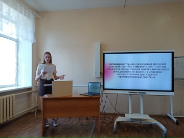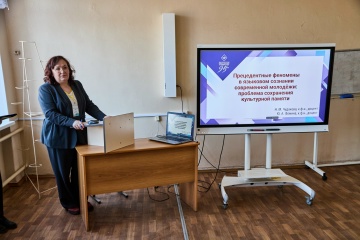 Первыми представили доклад «Прецедентные феномены в языковом сознании современной молодёжи: проблема сохранения культурной памяти» Н. М. Чудакова и Ю. А. Фомина, доценты кафедры ИЯРФ. Наиля Муллахметовна рассказала о том, какие из прецедентных имен, актуальных для нашей национальной культуры, остаются в сознании современной молодежи, а какие деактуализируются полностью или частично. Были приведены примеры различных когнитивных ошибок, в частности, омонимической интерференции. Так, в сознании студентов первого курса место Федора Шаляпина, выдающегося русского певца, занимает Прохор Шаляпин, представитель современной массовой культуры. Юлия Алексеевна поделилась наблюдениями о наиболее типичных ошибках, которые допускают студенты разных факультетов при выполнении одного из заданий традиционной олимпиады по русскому языку и культуре речи: при восстановлении исходной формы прецедентного высказывания и указании его источника. Доклад вызвал живой интерес присутствующих.