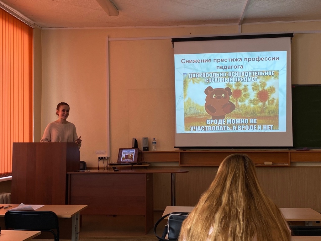 Фундаментом для рассуждений стали творческие доклады студентов ФППО, после чего каждый участник смог выразить свою позицию по данной теме и привести весомые аргументы.