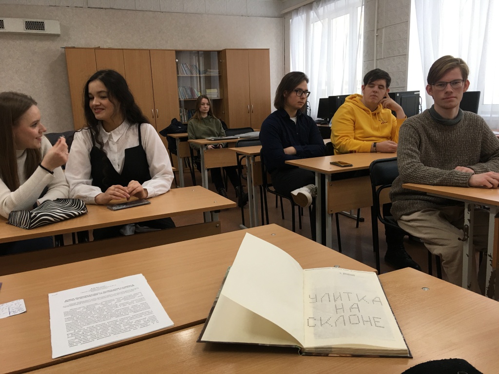 15 декабря на социально-гуманитарном факультете состоялось заседание литературного клуба «Круг чтения», которое было посвящено литературному творчеству Аркадия и Бориса Стругацких и роману «Улитка на склоне». Дискуссия началась с обозначения основных вех биографии писателей. Было отмечено два важных момента: детство в блокадном Ленинграде и зрелость в эпоху оттепели. В ходе обсуждения участники дискуссии попытались объяснить феномен творчества братьев Стругацких. Во-первых, был подчеркнут сатирический характер повестей и романов, что отличает прозу Стругацких от текстов других писателей-фантастов советского периода, например, И. Ефремова. Во-вторых, произведения А. и Б. Стругацких относятся к жанру научной фантастики, при этом они наполнены психологическими деталями и актуализируют острые общественные проблемы.