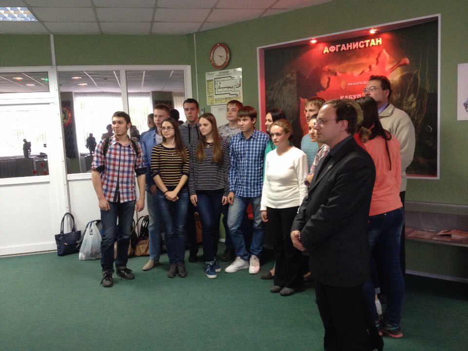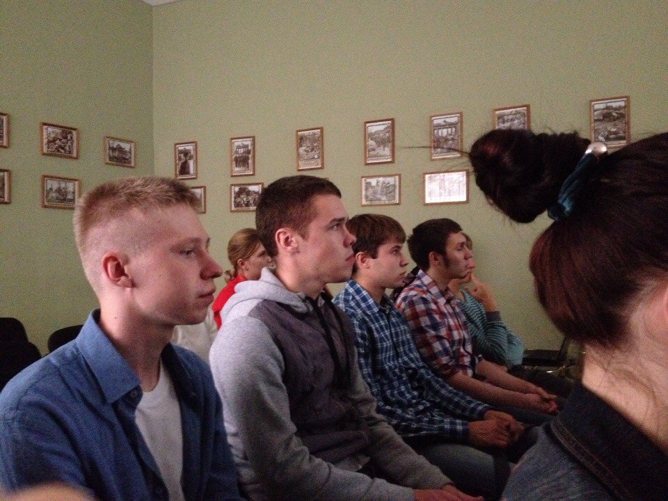 Далее слово было дано педагогу-организатору центра «Мир», известному в городе краеведу Сергею Игоревичу Пудовкину. Его рассказ сопровождался кинохроникой и фотографиями из архива города. На уроке памяти присутствовал представитель молодежной думы Дарья Михайловна Старикова, член комиссии по взаимодействию со СМИ; член комиссии по взаимодействию с молодёжными организациями и объединениями. Она от лица молодежной думы выразила желание активно сотрудничать со студентами нашего ВУЗа. В завершении мероприятия студентам показали экспозицию музея.