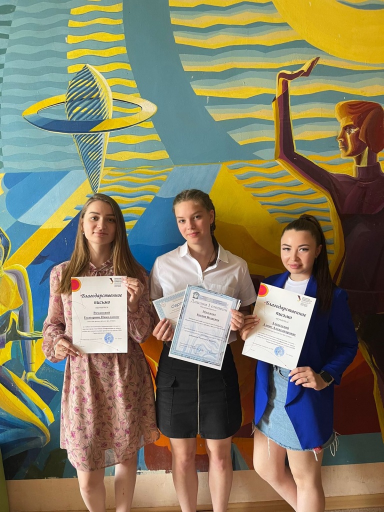 Под руководством студентов 4 курса СГФ Екатерины Кабаковой, Николая Чакина, Алины Алексеевой и Екатерины Романовой учащиеся 1 курса СПО ФСБЖ приняли участие в конференции по защите учебно-исследовательских проектов студентов СПО Горнозаводского управленческого округа 2022–2023 учебного года, состоявшейся 30 мая в Нижнетагильском машиностроительном техникуме. Работы студентов посвящены победе в Великой Отечественной войне, а на конференции они были заявлены в номинации «Творческие проекты».