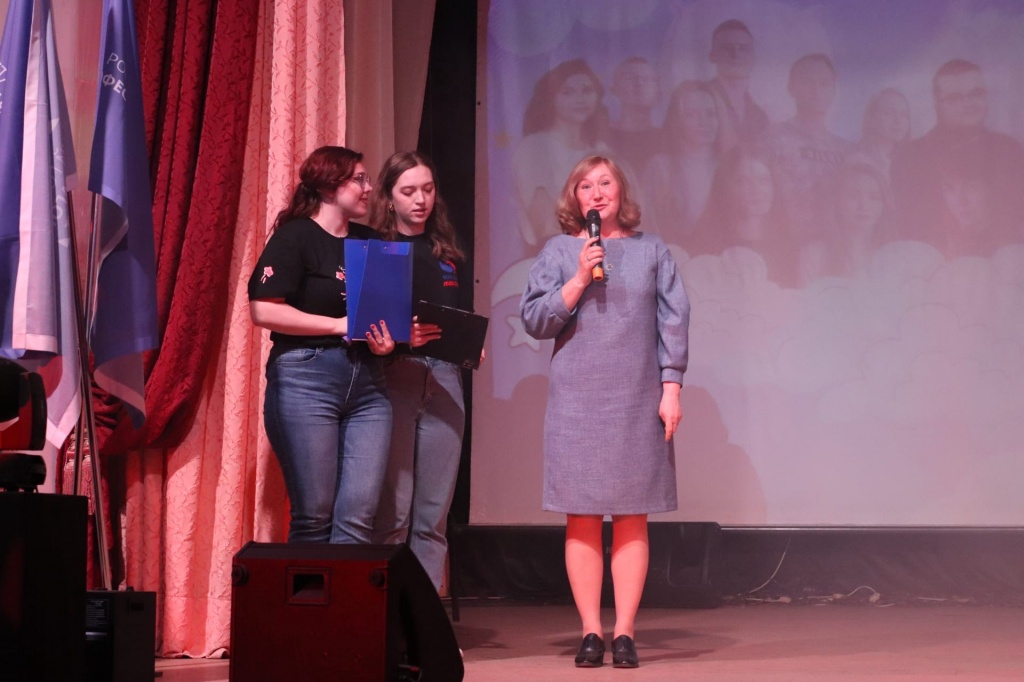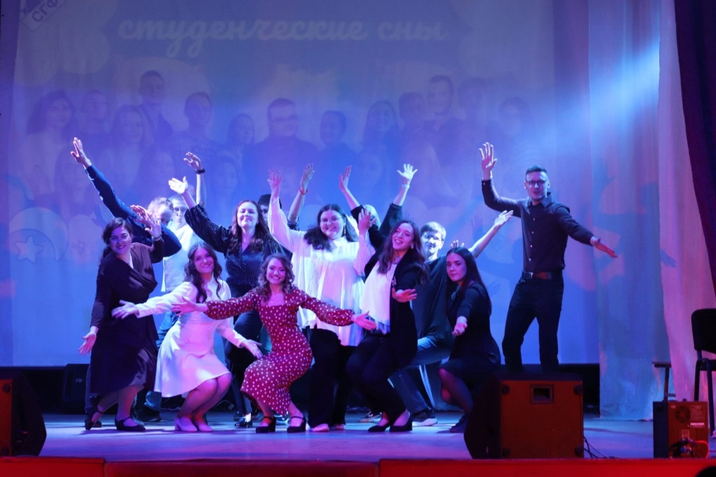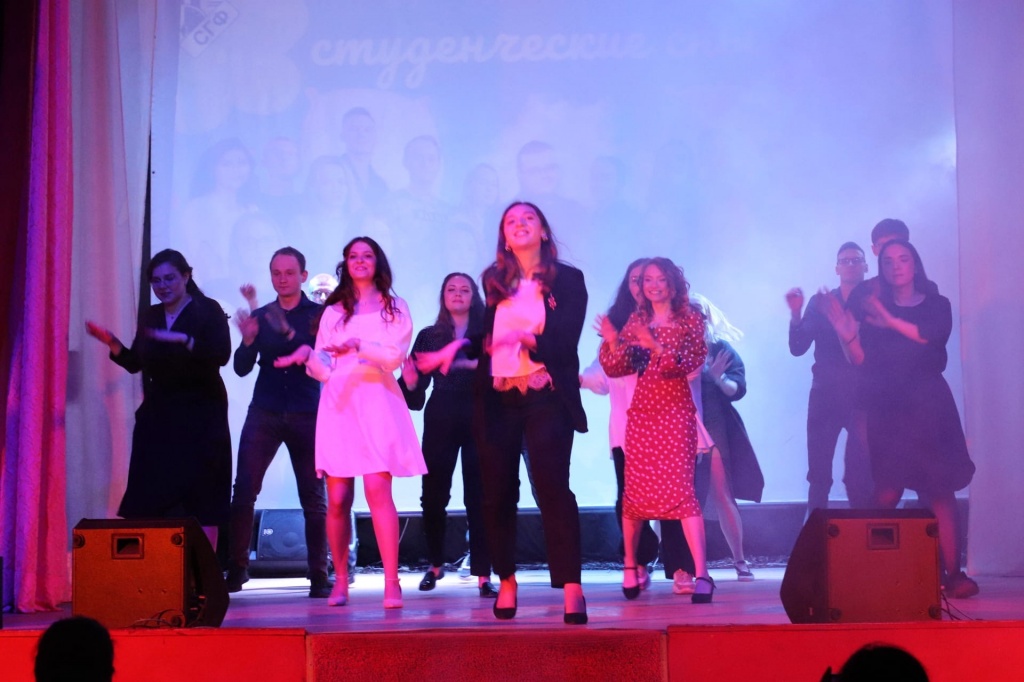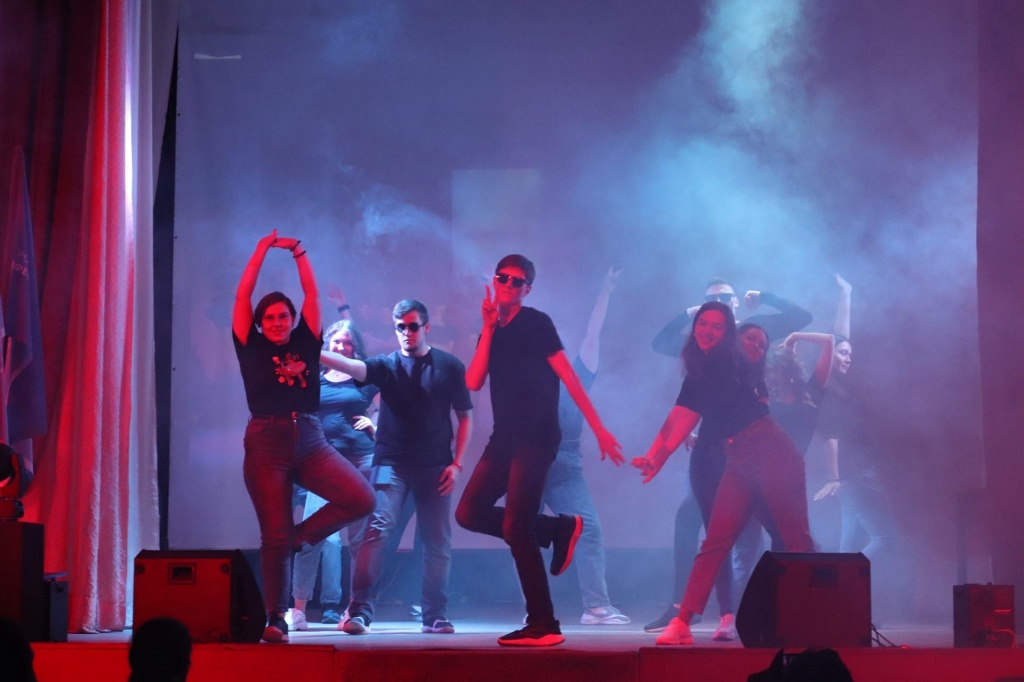 В конце концертной программы с поздравлениями для пятого курса выступили первокурсники. Студенты подарили выпускникам танец и сказали им напутственные добрые пожелания.