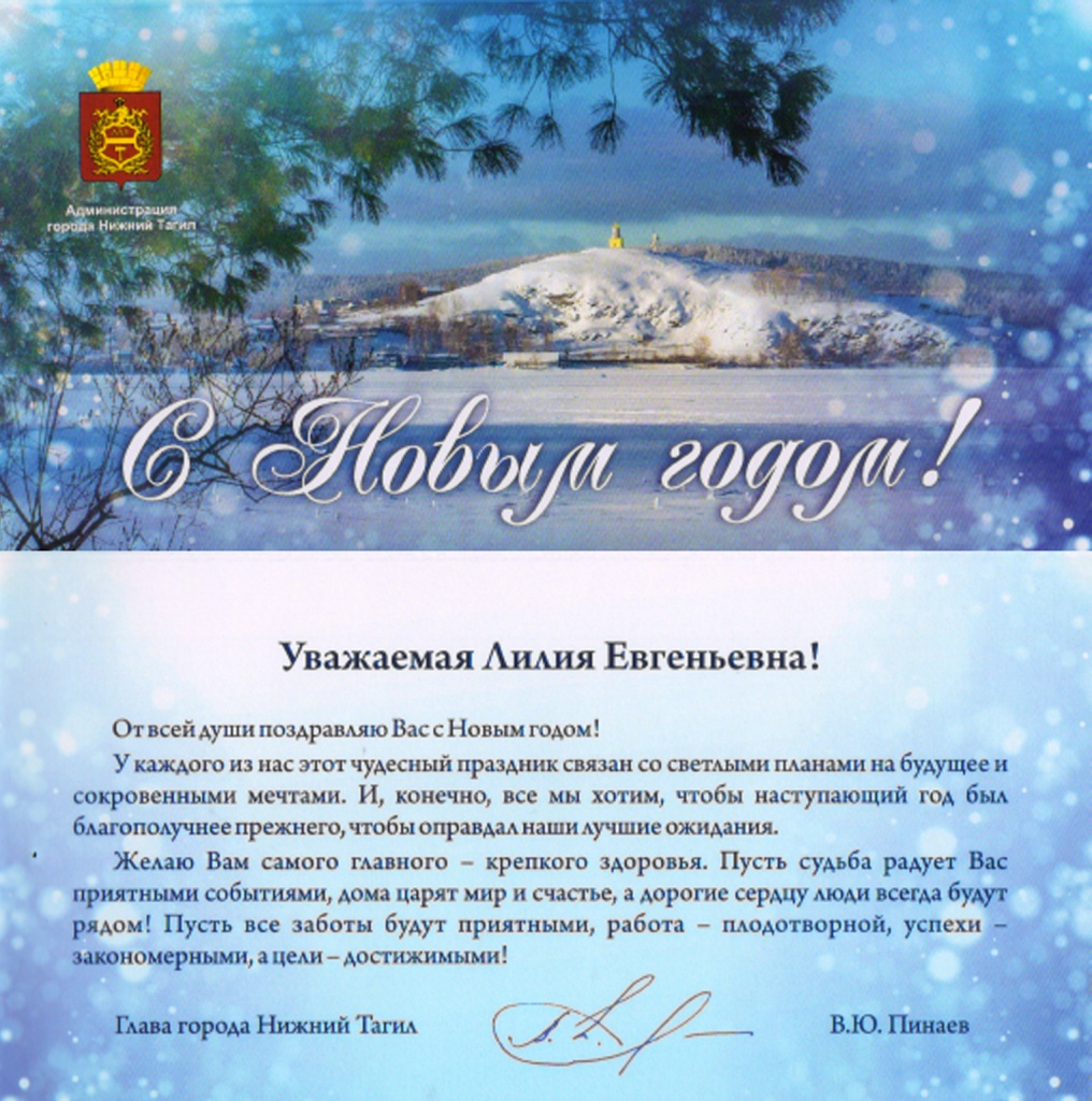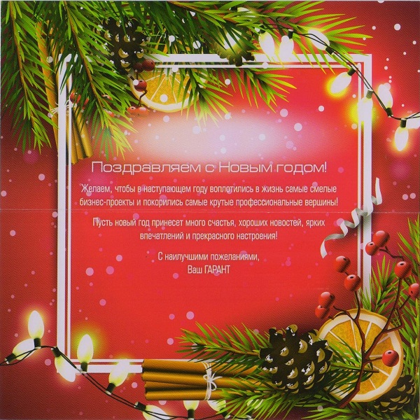 Пусть Новый год станет для Вас годом благополучия, воплощения мечты и надежды на лучшее будущее. Пусть успех будет Вашим спутником во всех делах и начинаниях, а новым помыслам сопутствует удача!