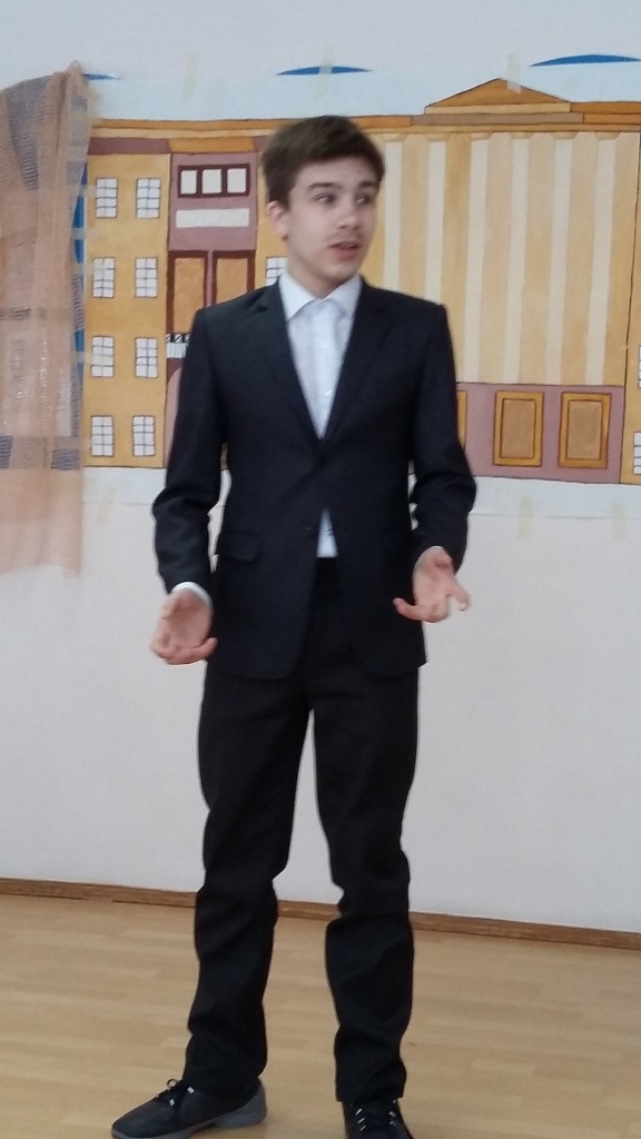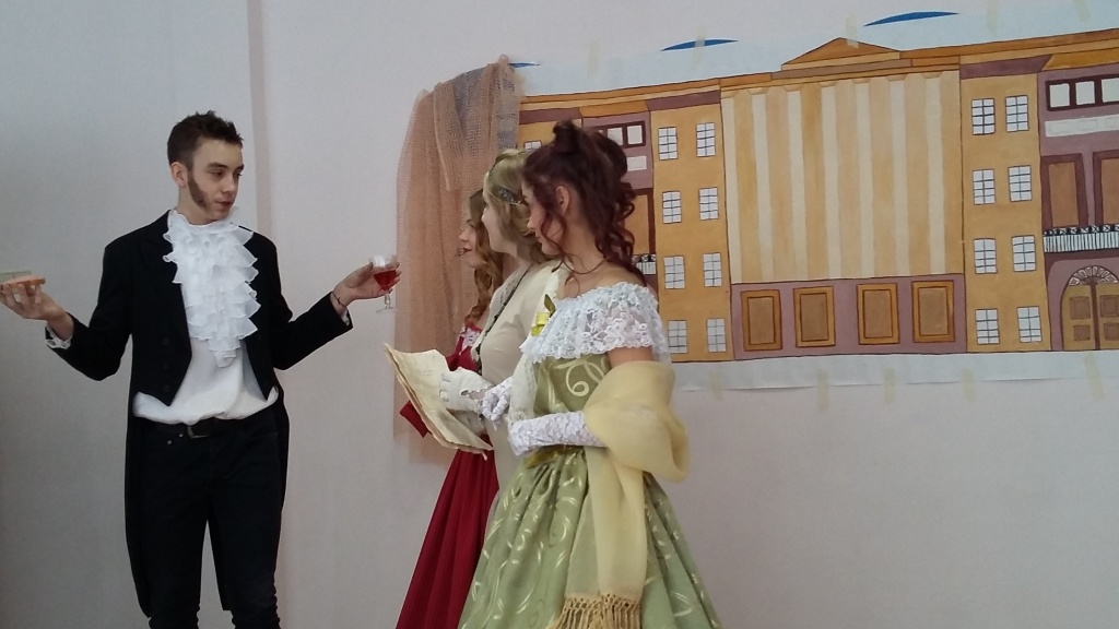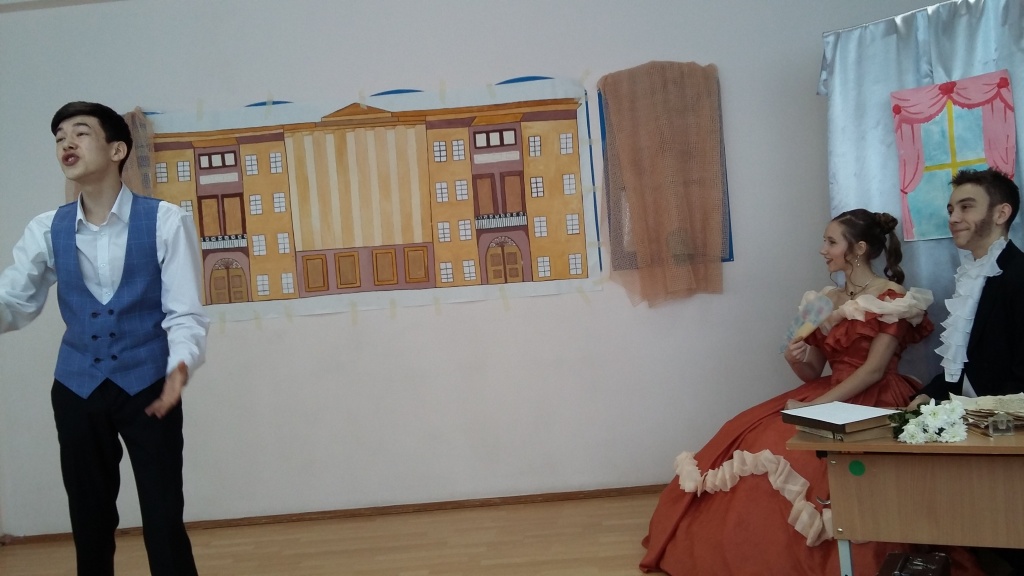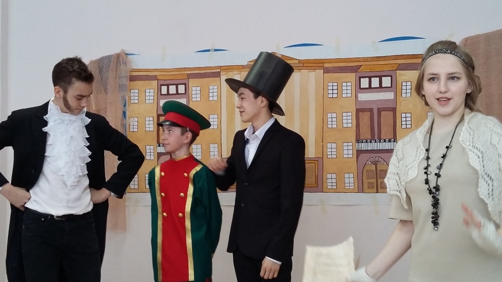 Захватывающее действие перенесло зрителей то в трагический для Пушкина и всей России 1837 год, то в дни его лицейской юности, то в годы одесской ссылки поэта. Тонким романтизмом была наполнена сцена сватовства Пушкина к Наталье Николаевне Гончаровой. Ее блестяще исполнили Константин Синявский и Лина Налькина-Смольникова, учащиеся 9 класса. Особо пронзительной, на мой взгляд, была сцена Лермонтовской поэтической рефлексии «На смерть поэта», исполненная Степаном Зубко. А как проникновенно о своем воспитаннике говорил «побежденный поэтический учитель» Василий Андреевич Жуковский, роль которого изумительно сыграла Полина Бирюкова! Сразу с двумя ролями (Кюхельбекера и Дантеса) успешно справился Динмухаммед Таштанов, успев при этом продемонстрировать свои вокальные данные. Одним словом, все 20 юных читателей-актеров не просто играли, но проживали свои роли.