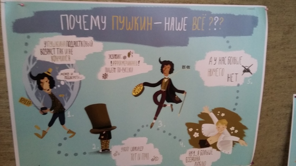Пушкинский день незаметно подошел к концу. Единственное, о чем я пожалела, – что не все желающие смогли в нем поучаствовать – школьный актовый зал нуждается в капитальном ремонте, а вместимость классов и даже школьных рекреаций ограниченна. Но ситуацию можно поправить, отправив проект «Твой Пушкин» на «гастроли» по городу. На мой взгляд, проект заслуживает «гастролей» прежде всего потому, что год этот особенный – 220 лет со дня рождения А. С. Пушкина. Ближайшей датой гастролей может стать 21 марта – Всемирный день поэзии, а местом – сцена Нижнетагильского социально-педагогического института, ведь очень важно, чтобы будущие учителя тоже попытались открыть своего Пушкина.