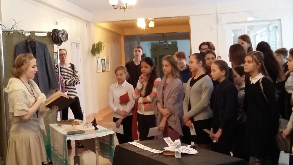 Конечно, такого глубокого понимания роли не случилось бы без предварительного «информационно-эмоционального погружения» в эпоху, в наследие Пушкина, Цветаевой. За период подготовки проекта школьники перечитали много книг, пересмотрели много документальных фильмов. Вот так, через творчество одного классика – М. Цветаевой, не случайно названной «Пушкиным в женском обличье», – ребята попытались глубже понять творчество другого классика, «нашего всего». И увлекла их в эти герменевтические круги постижения Пушкина не по годам талантливая девочка – Алена Коваль, она же Аля Эрц. Она не только написала сценарий пьесы, режиссировала весь Пушкинский день, но и как настоящий художник-оформитель создала «графическое лицо проекта», оформив в едином стиле программки, приглашения, сертификаты участникам и благодарственные письма партнерам проекта. В этот день она меняла роли одну за другой: то была музейным гидом, то организатором поэтической дуэли. Но с особым наслаждением она сыграла роль Марины Цветаевой, от лица которой и велось все сценическое повествование.