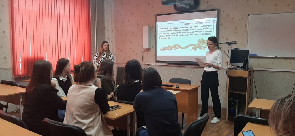 На этапе «Русский язык» гости факультета трансформировали словосочетания, переводили с языка коми на русский, разгадывали загадку китайского мудреца Лао-Цзы.
