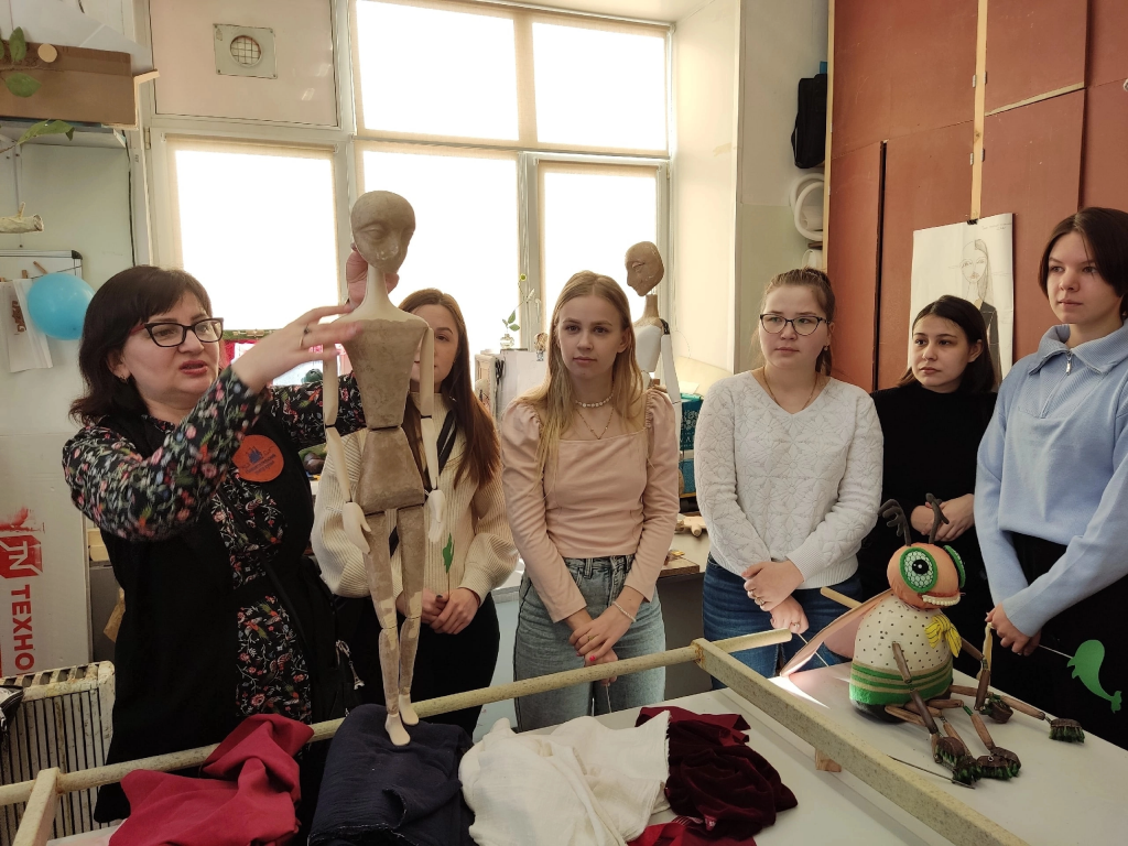 9 февраля студенты факультета психолого-педагогического образования группы Нт-504о НДО под руководством Ирины Борисовны Ческидовой посетили с экскурсией Нижнетагильский театр кукол, где им были продемонстрированы мастерские, куклы из спектаклей, закулисье. Кроме того, у ребят была возможность наблюдать рабочий процесс создания кукол, посмотреть виды и способы управления ими. Студентов познакомили с талисманом кукольного спектакля – лисенком, с которым актеры ездят на гастроли. Была у них и уникальная возможность попробовать себя в роли кукловода. После небольшого мастер-класса студенты разыграли постановку в теневом театре с куклами.