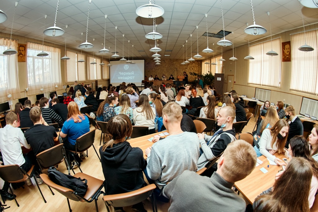 В первом раунде студентам были представлены фотографии, связанные с выборами. Нужно было подумать и написать, что спрятано за черным квадратом на фото.