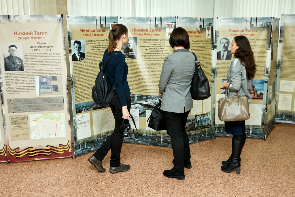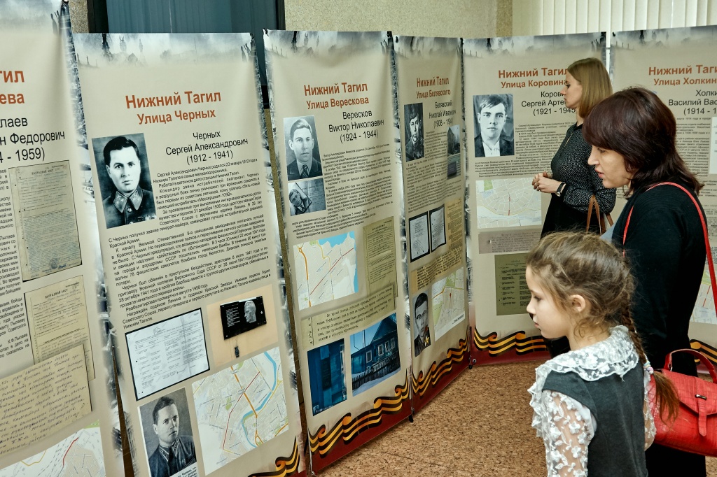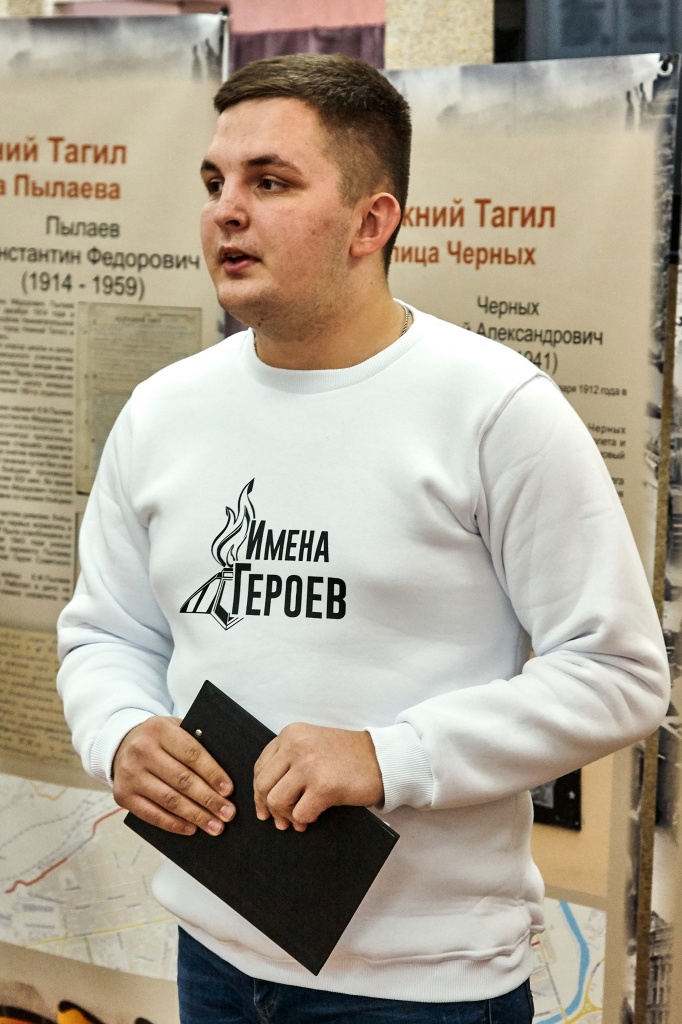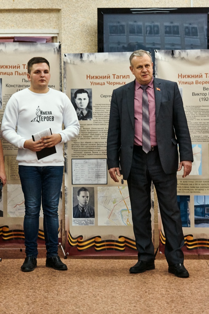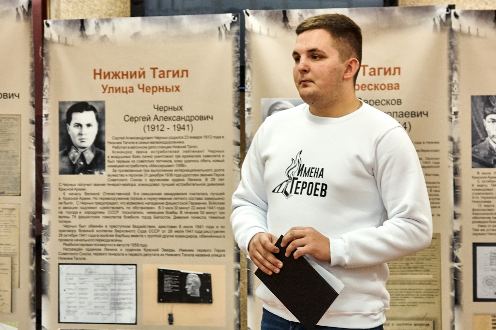 В феврале 2018 года на Всероссийском конкурсе молодежных проектов Сергеем Намятовым был выиграл грант на реализацию гражданско-патриотического проекта, носившего тогда название «Имена Победы». Сейчас же проект «Имена Героев» знакомит нас не только с Героями-тагильчанами, ставшими участниками Великой Отечественной войны, но и с Героями Труда, в честь которых названы многие улицы города. Улицы имени Захарова, Максарева, Окунева, Дружинина, Черных – лишь немногие из представленных на выставке.