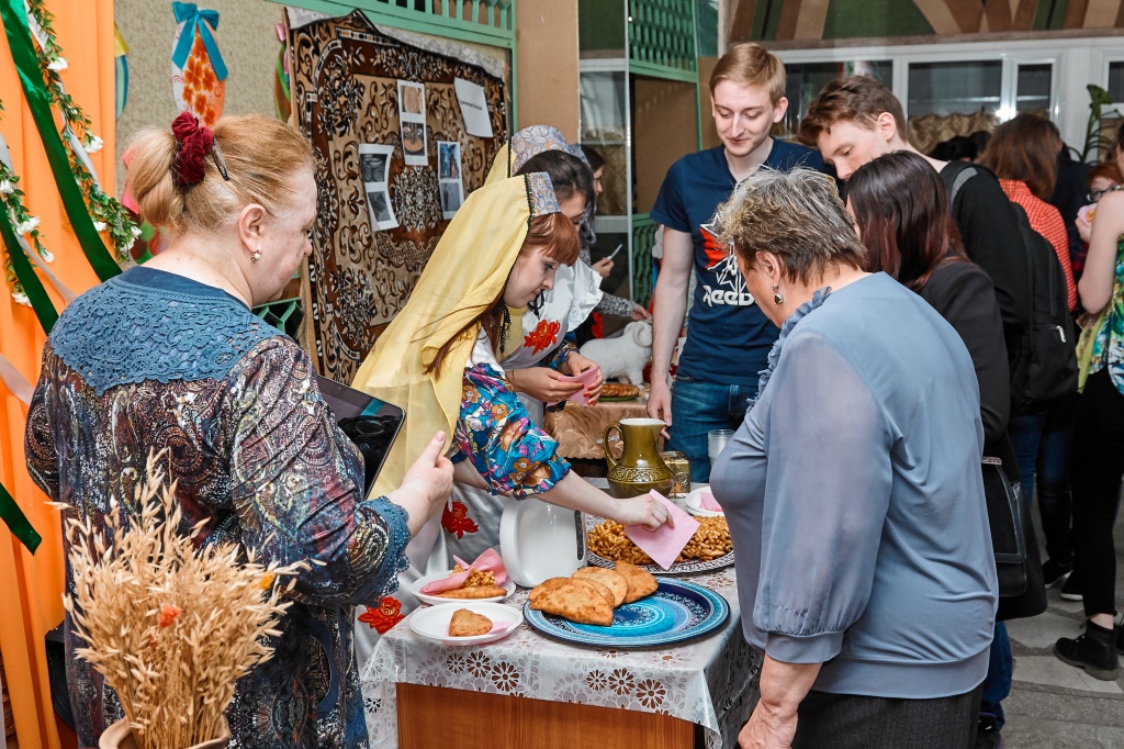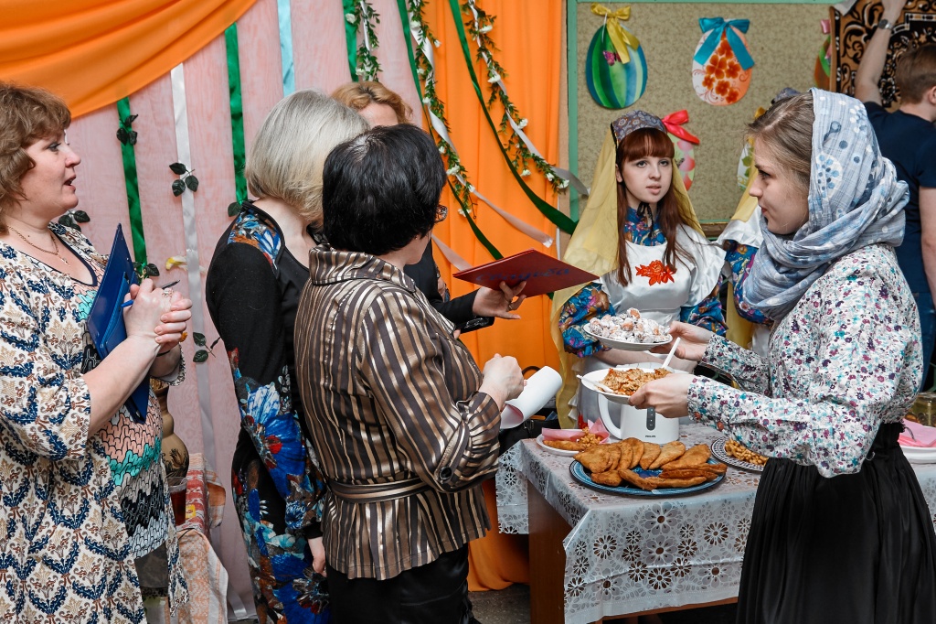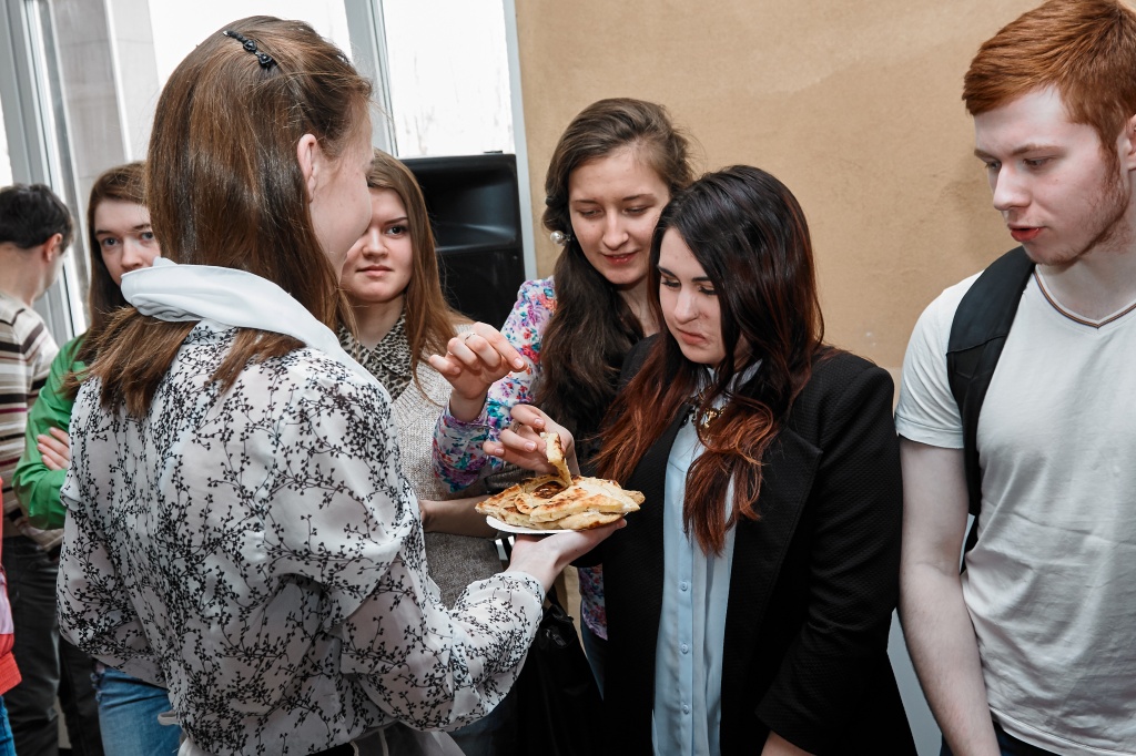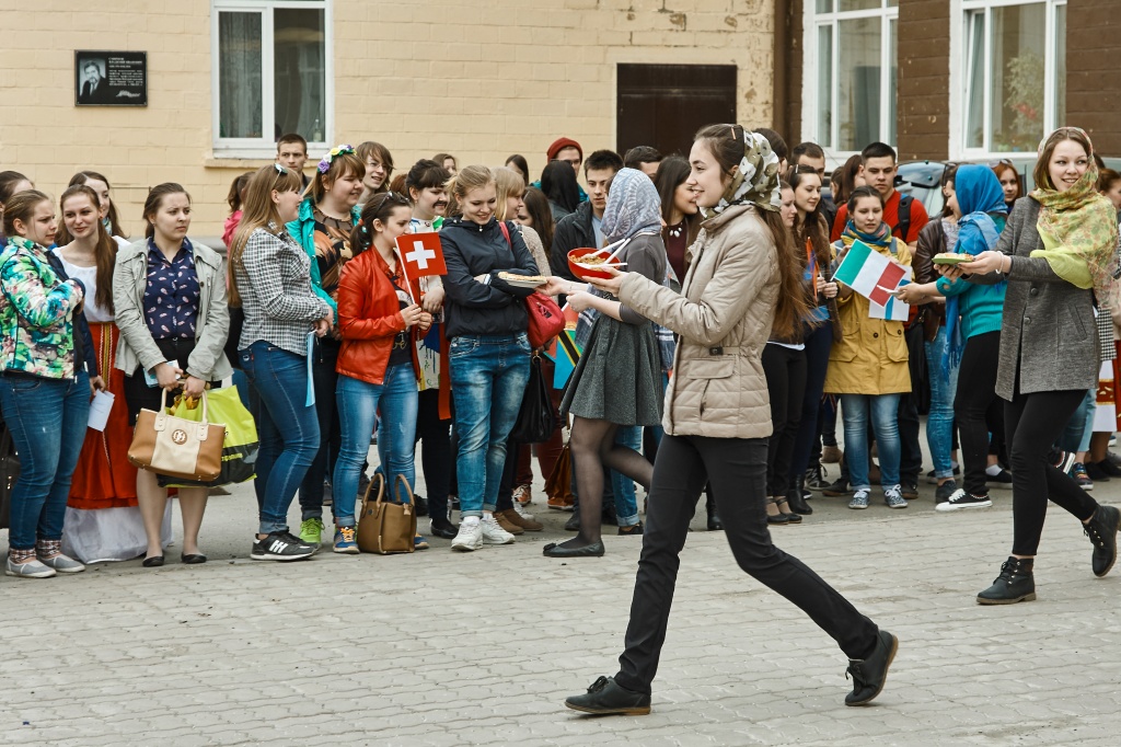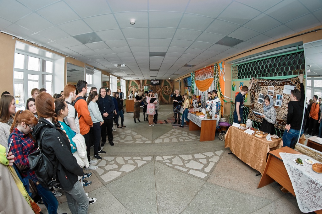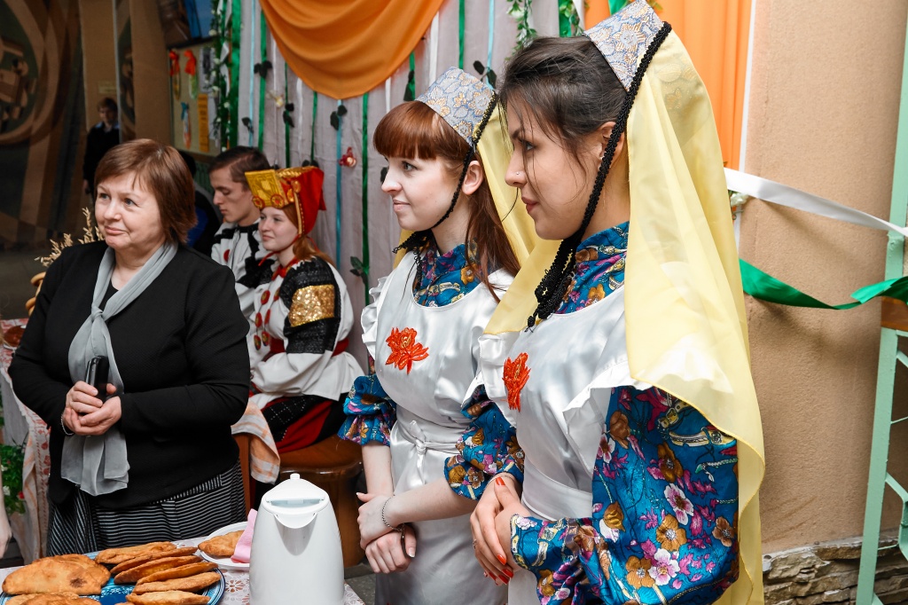 Основное действие торжественного открытия пасхального праздника состоялось в 12:10. В холле института была представлена национальная свадебная атрибутика. Каждый факультет накрыл стол в соответствии с выбранной нацией.