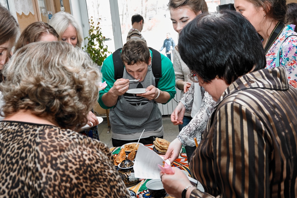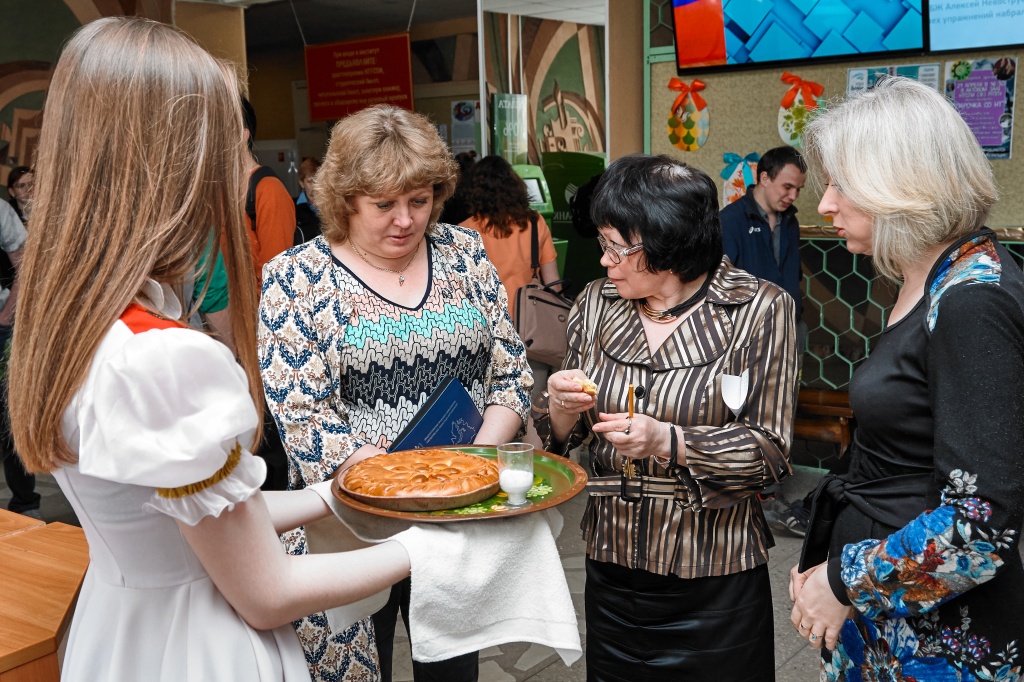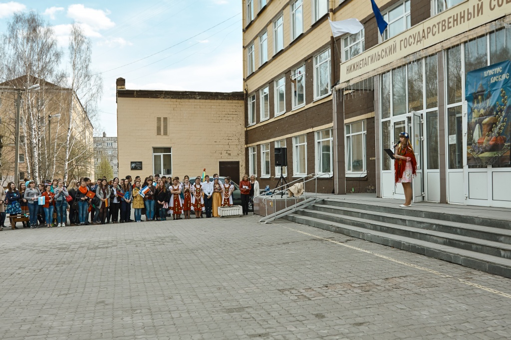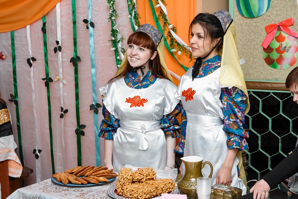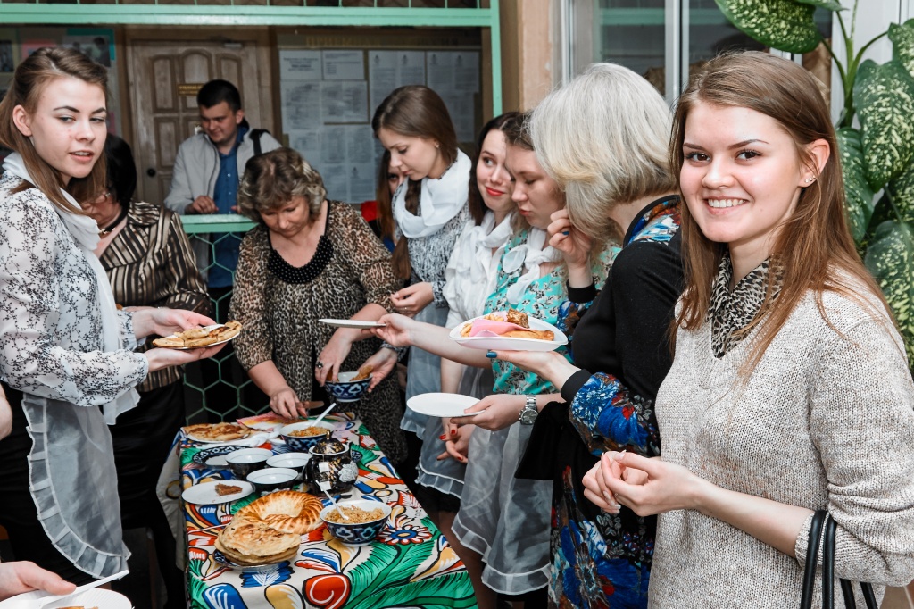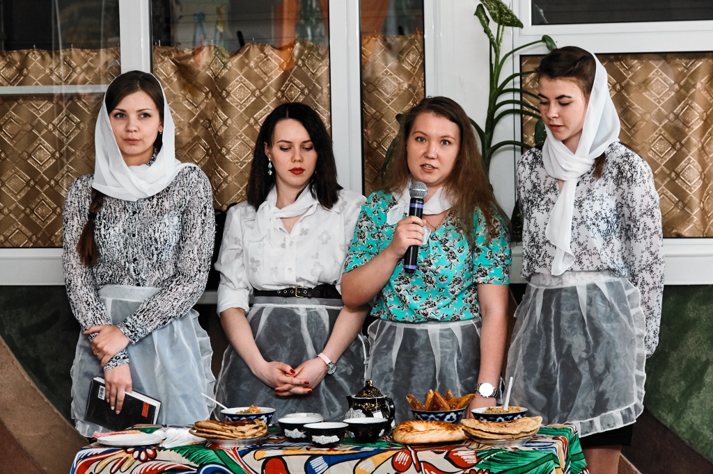 Основное действие торжественного открытия пасхального праздника состоялось в 12:10. В холле института была представлена национальная свадебная атрибутика. Каждый факультет накрыл стол в соответствии с выбранной нацией.