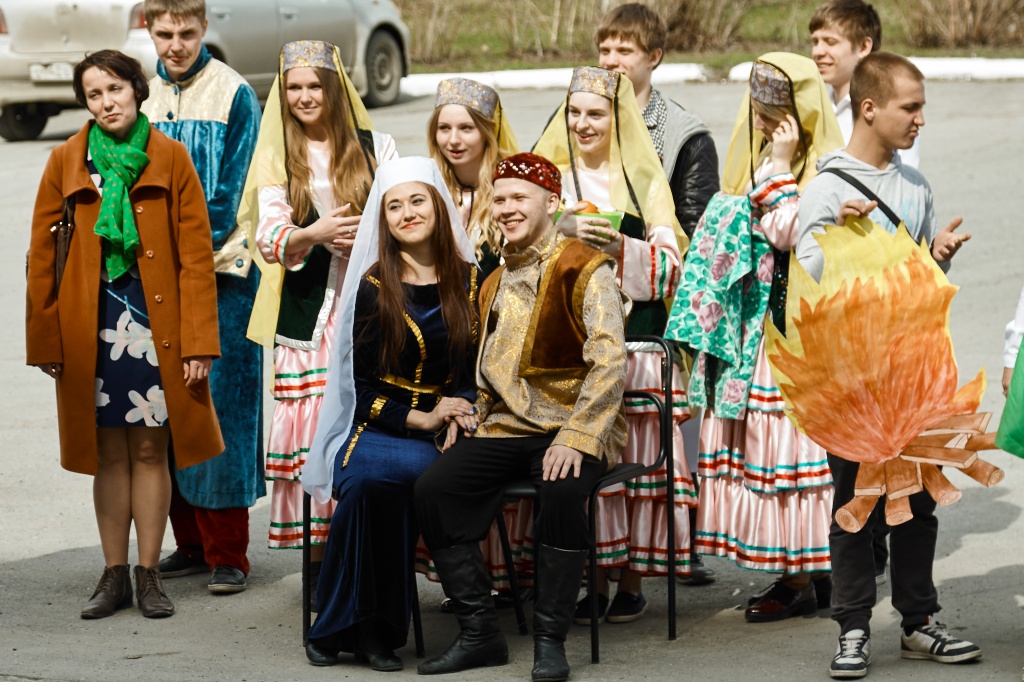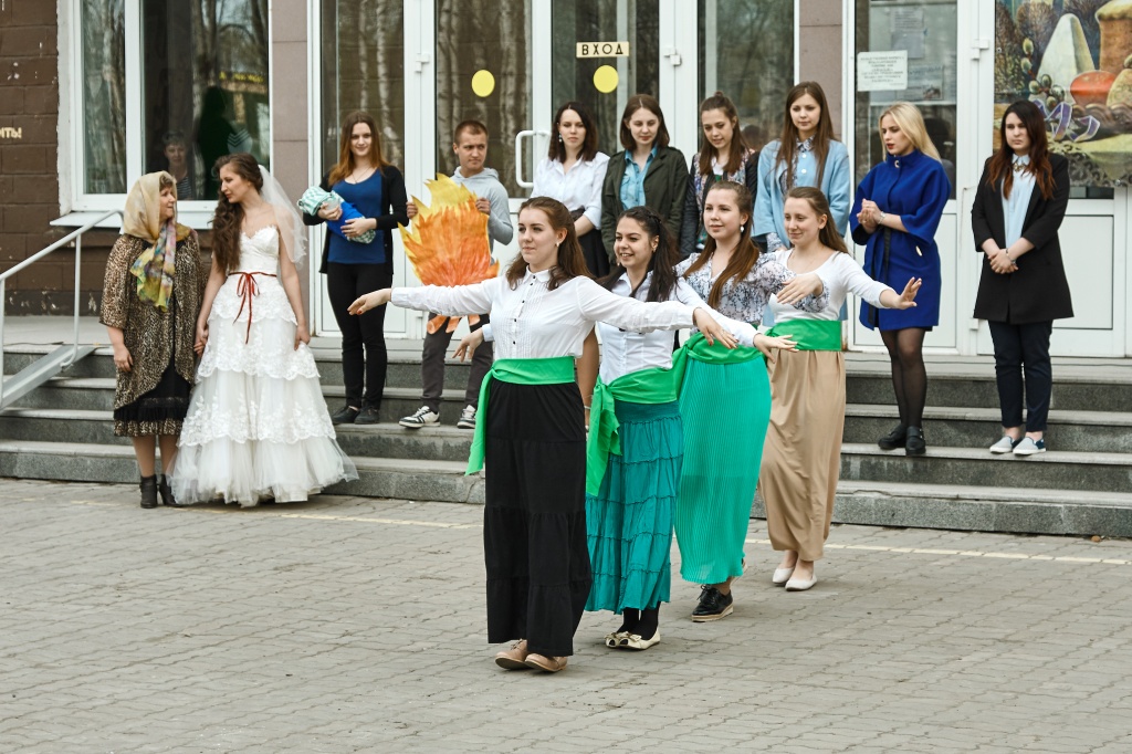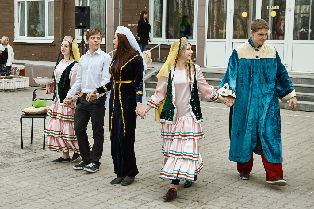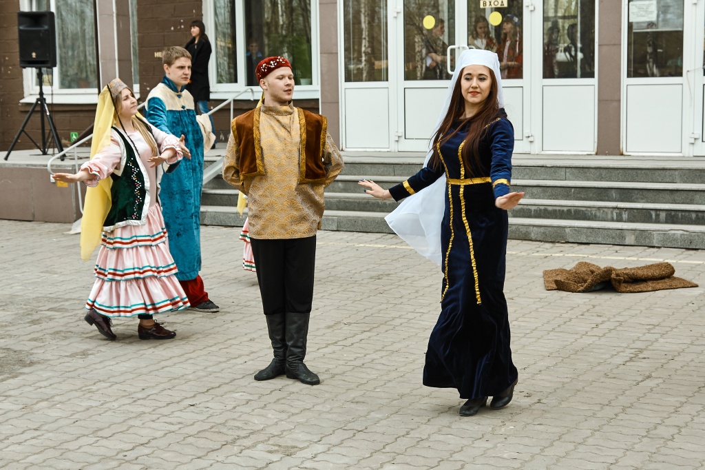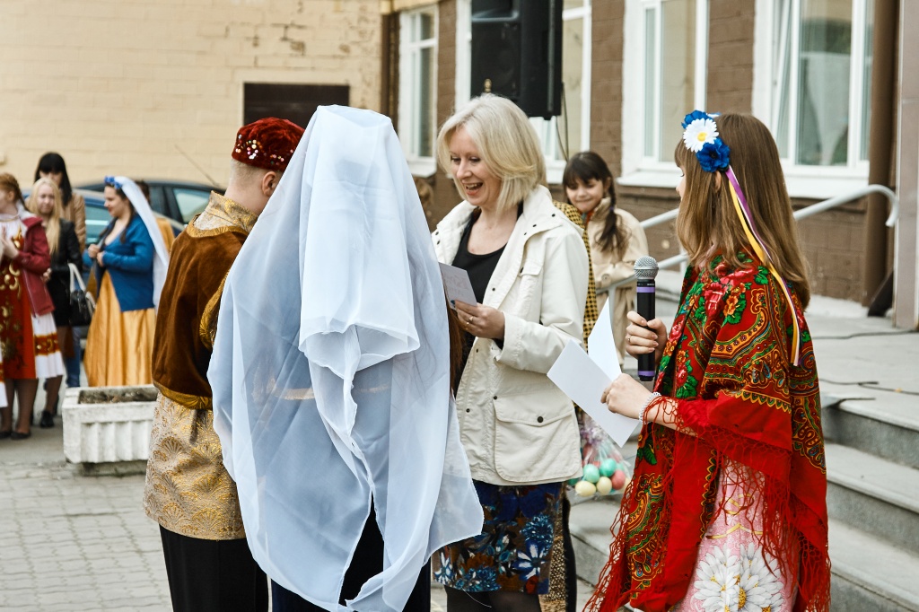 В 14:30 на главной площади института в завершение пасхального праздника состоялся конкурс, где факультеты представили национальные свадебные обряды казахов, белорусов, татар, украинцев, таджиков, азербайджанцев, Русскую свадьбу представили студенческие отряды – в не конкурса.